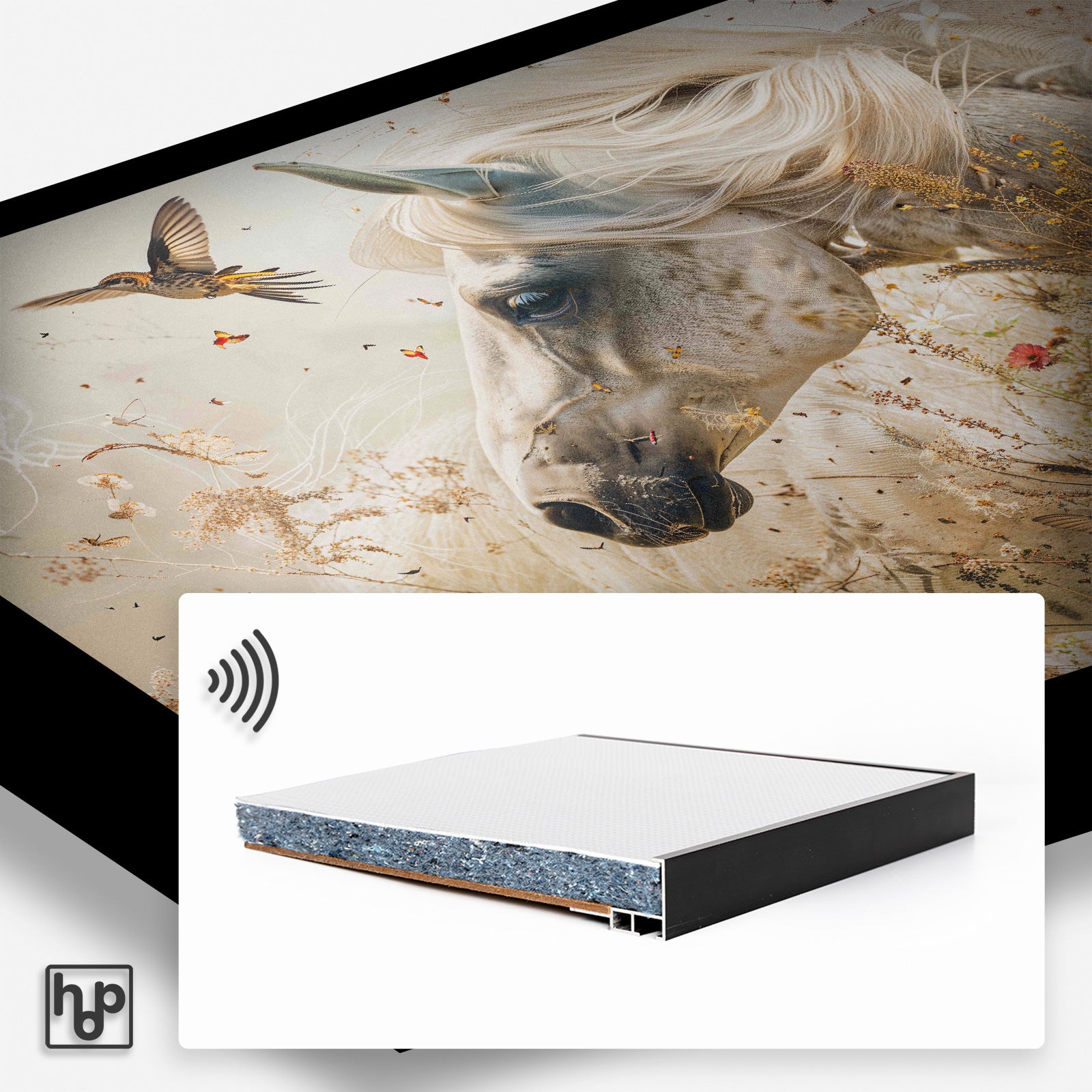 Prachtige afbeelding en heel gemakkelijk op te hangen door het voorgemonteerde ophangsysteem.