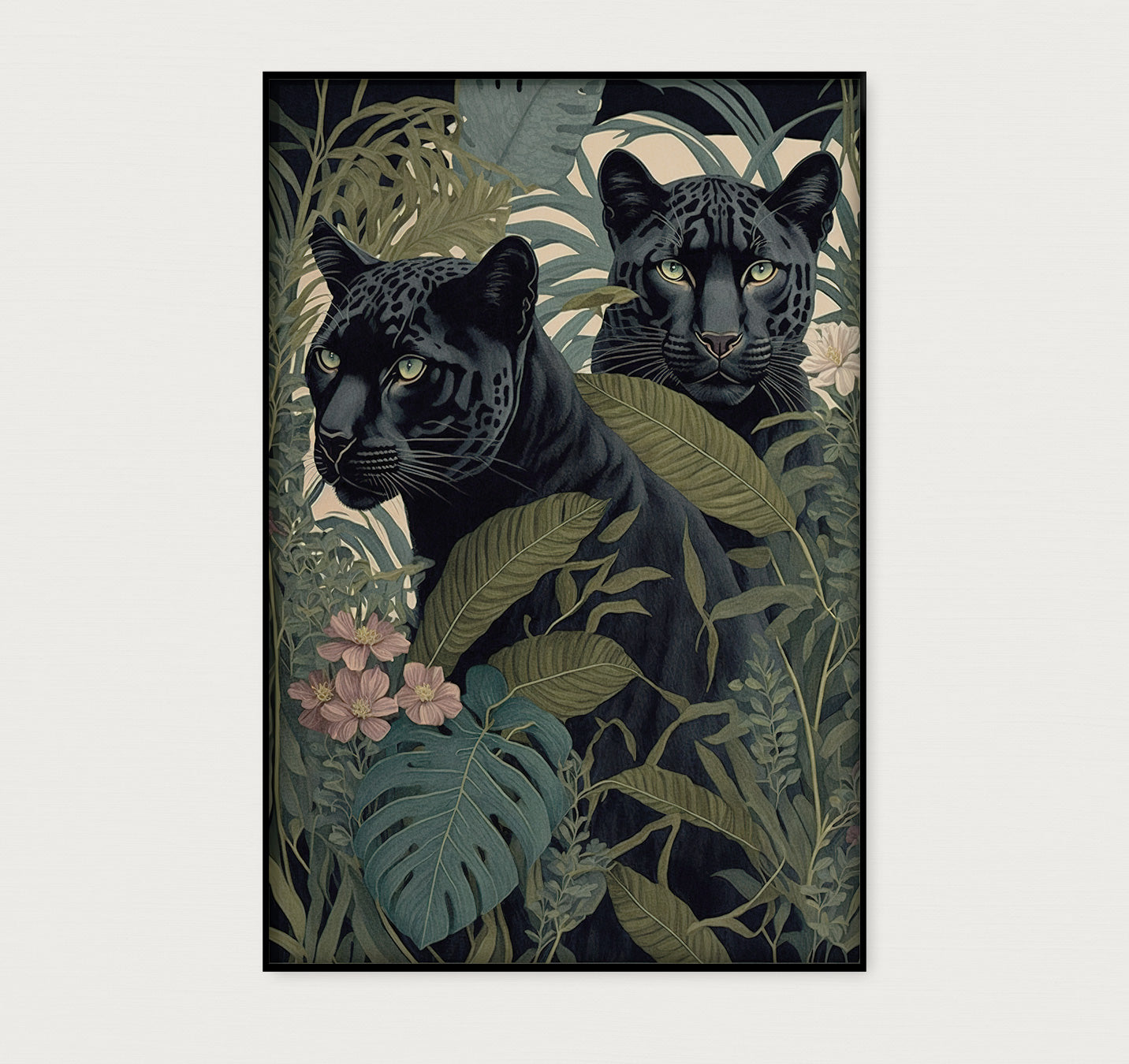 De Black Panthers akoestische wanddecoratie voegt een unieke, stijlvolle sfeer toe aan iedere ruimte. Dit ontwerp, geïnspireerd door de krachtige elegantie van panters, combineert een modern en natuurlijk thema met diepe zwart- en grijstinten. Het schilderij creëert een rustige en verfijnde ambiance, perfect voor wie een serene uitstraling wil binnenshuis. Door de kalmerende uitstraling versterkt het tevens het gevoel van rust en balans in jouw woonkamer, slaapkamer of kantoor.