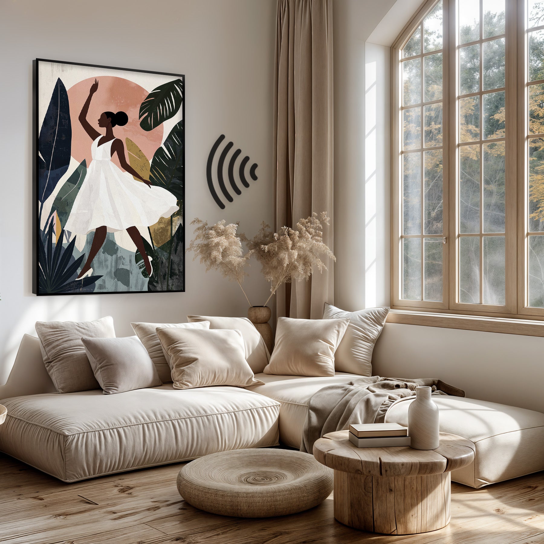 - Combineert kunst en geluidsabsorptie in één stijlvol product