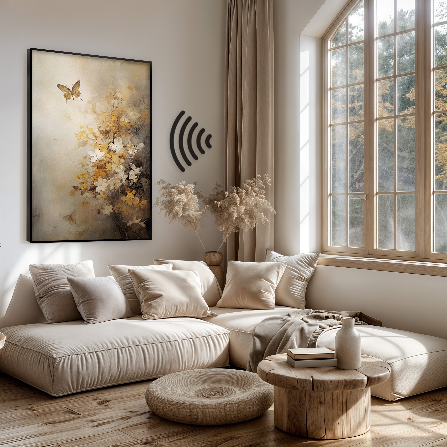 De verfijnde print springt in het oog dankzij de hoge scherpte en levendige kleuren, terwijl het paneel dankzij het akoestische materiaal echo’s en nagalm effectief vermindert. Ideaal voor in de woonkamer, slaapkamer of kantoor waar een warme en stille ambiance gewenst is. Dit unieke kunstwerk verbindt duurzame esthetiek met functionele geluidsabsorptie en tilt jouw interieur naar een hoger niveau.