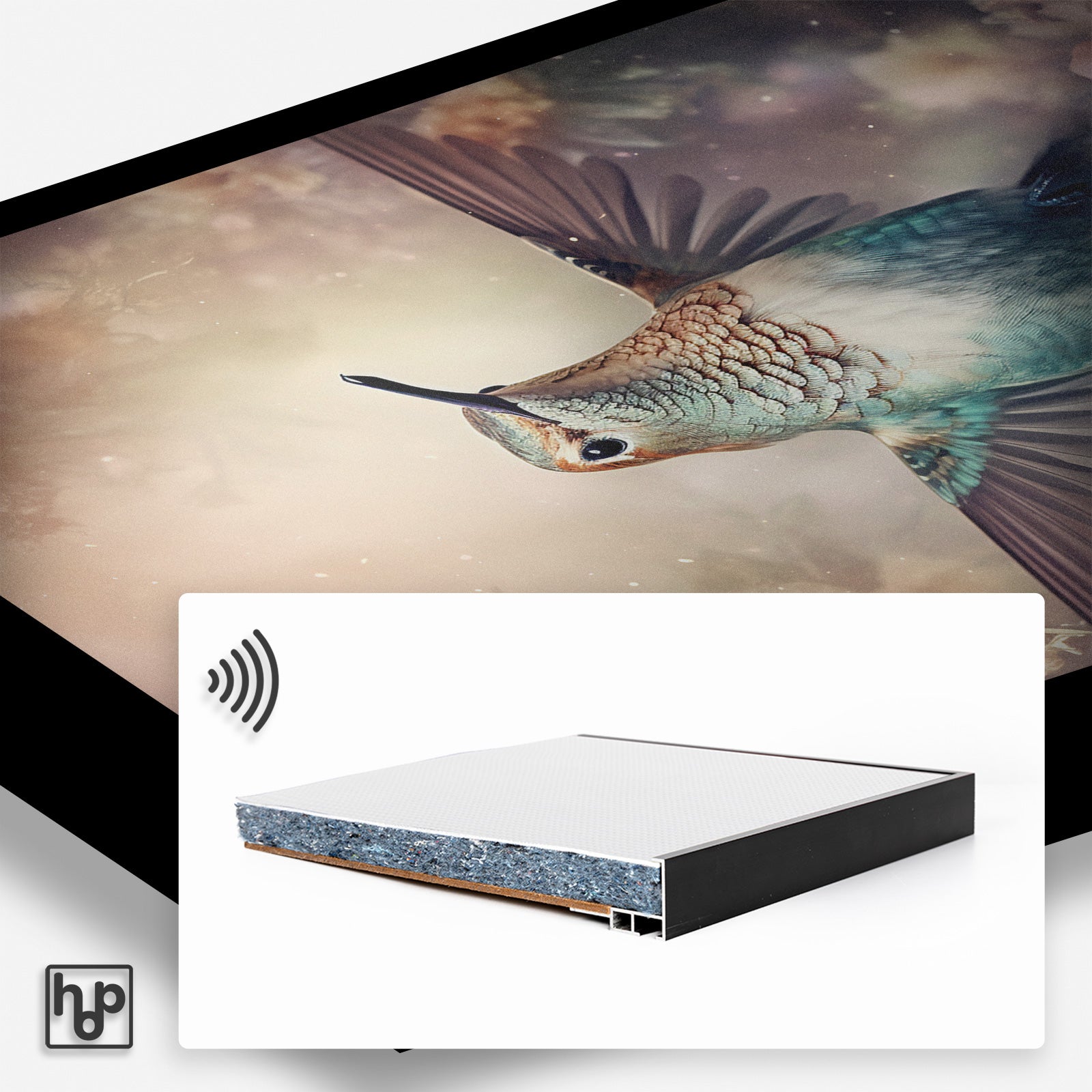 Ervaar de rust en sereniteit die de Hummingbird · Akoestisch paneel in jouw ruimte brengt. Het verfijnde ontwerp van een kolibrie in zachte, natuurlijke kleuren creëert een kalmerende sfeer, ideaal om thuis te ontspannen of gefocust te blijven op je werkplek. Dit stijlvolle muuraccent verrijkt elke omgeving met zijn elegante uitstraling.