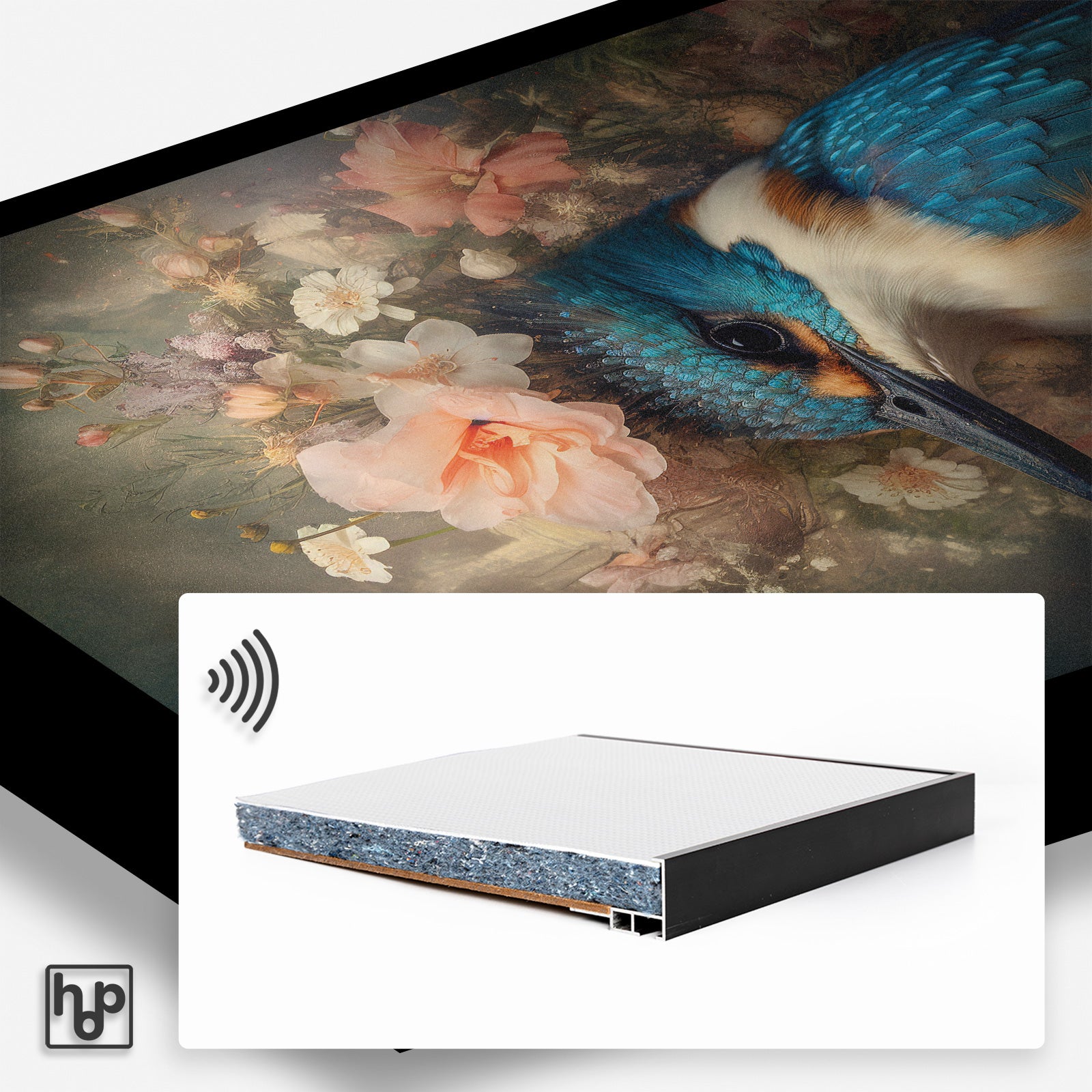 De Kingfisher 7 akoestisch paneel is ideaal voor iedereen die zoekt naar een manier om akoestiek en uitstraling te combineren in woon- of werkruimtes. Het geluidsabsorberende paneel zorgt voor minder galm, terwijl het elegante design jouw interieur verrijkt. Ontdek hoe deze wanddecoratie met geluidsabsorptie jouw ruimte kan transformeren en ervaar de perfecte balans tussen kunst en functionaliteit. Voeg nu gemakkelijk meer rust en stijl toe aan jouw interieur.