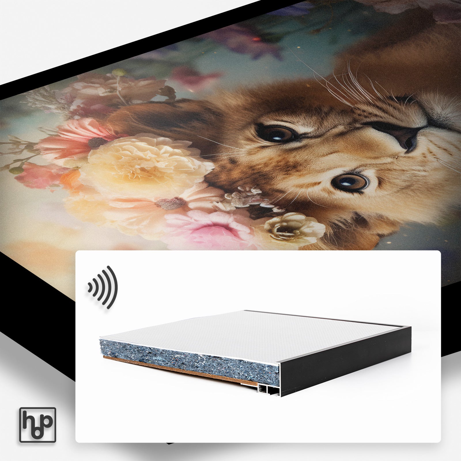 Deze akoestische wanddecoratie is de ideale keuze voor jou die zowel waarde hecht aan mooie kunst als een betere geluidskwaliteit in huis of op het werk. Voeg deze stijlvolle en functionele eyecatcher toe aan jouw interieur en ervaar het verschil in akoestiek en ambiance. Ontdek hoe het Lion Cub ontwerp jouw ruimte kan transformeren.
