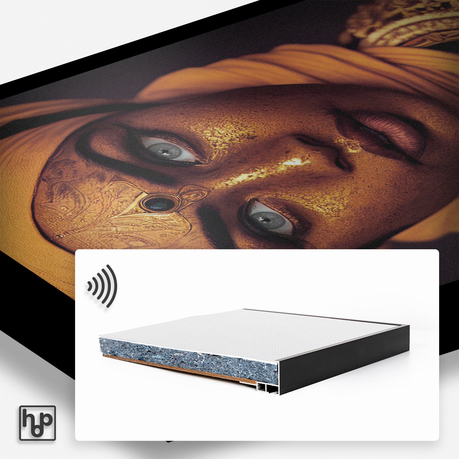 Deze akoestische wanddecoratie onderscheidt zich door de perfecte balans tussen design en functionaliteit. Het hoogwaardige materiaal zorgt voor effectieve geluidsabsorptie, waardoor galm en echo’s worden verminderd. Tegelijkertijd geniet je van een scherp afgewerkt kunstwerk dat de uitstraling van jouw interieur versterkt, zonder concessies te doen aan de kwaliteit van de print.