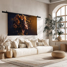 De combinatie van een vrouwelijke afbeelding en delicate bloemen geeft dit wandkleed een uniek visueel effect, vol zachte kleuren en een fluweelzachte textuur. Je kiest zelf voor Mezo – een robuuste matte stof met een natuurlijke uitstraling – of Velours, een luxe materiaal met een subtiele zijdeglans. Dit kunstwerk past perfect binnen diverse woonstijlen, van het landelijke tot hotel-chique, maar ook in een minimalistisch of bohemien interieur voegt het net dat beetje extra sfeer toe. Of je het nu gebruikt als wanddecoratie in de woonkamer, slaapkamer of werkplek, het geeft telkens warmte en elegantie.