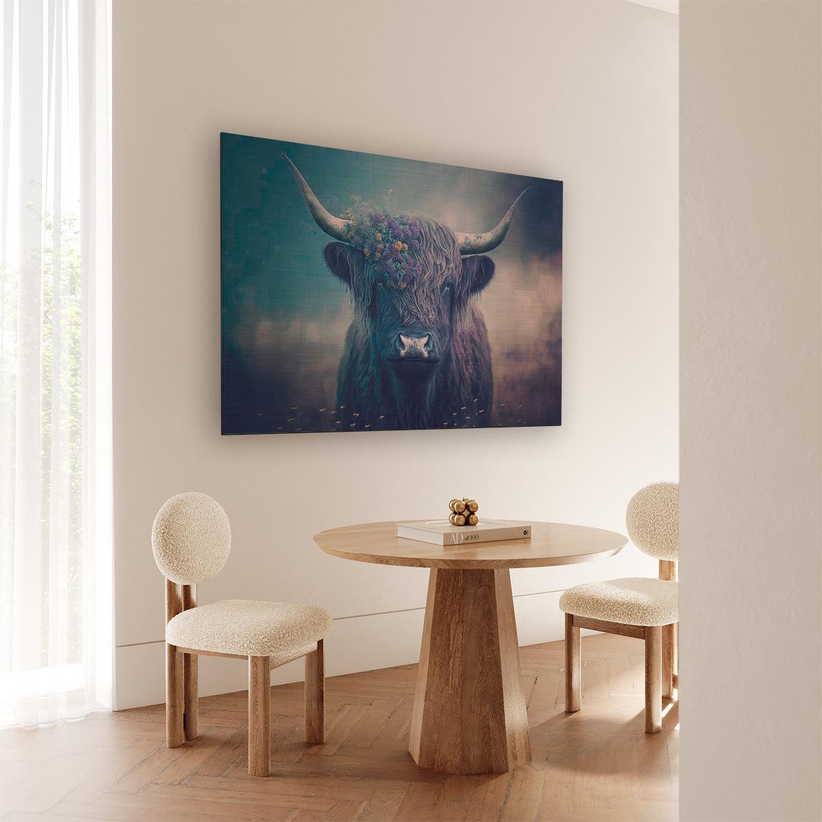 Deze zwart-witte designposter van de highland cow creëert met zijn sterke contrast en subtiele details een sfeervol muuraccent. Perfect om warmte en natuur in je woonkamer, slaapkamer of werkplek te brengen. Dankzij het rustige en krachtige beeld past dit kunstwerk uitstekend bij landelijke, Scandinavische en minimalistische interieurstijlen. Als veelzijdige muurkunst accentueert het jouw wanddecoratie met een stijlvol, botanisch thema.