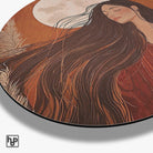De muurcirkel Ines van aluminium dibond straalt een warme, natuurlijke rust uit. Het ontwerp toont een stijlvolle vrouw met vloeiende haarlijnen, waarbij aardetinten en zachte bruintinten de sfeer bepalen. Deze moderne wanddecoratie past perfect in een woonkamer, slaapkamer of kantoor en brengt een harmonieuze, ontspannen uitstraling in jouw interieur. Door de cirkelvorm ontstaat een speels en dynamisch effect dat elke ruimte verrijkt zonder te overheersen.