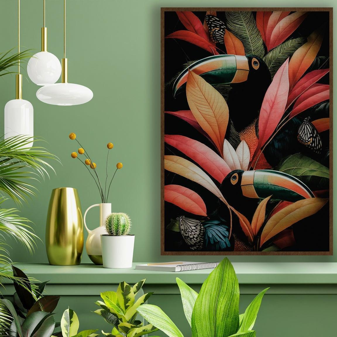 Breng een speelse en frisse sfeer in je interieur met deze Jungle Toucans poster. Dit botanische ontwerp maakt elke ruimte rustgevend en levendig, en versterkt zo het karakter van je woonkamer of slaapkamer.