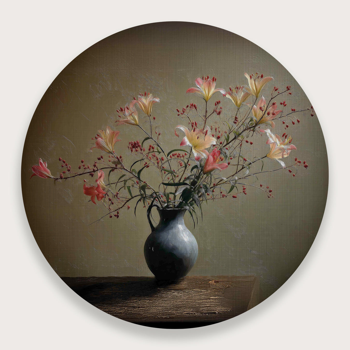 Deze muurcirkel is ideaal voor ruimtes zoals de woonkamer, slaapkamer, kantoor of hal. Dankzij het elegante, natuurlijke ontwerp en de moderne gedrukt op aluminium dibond past het zowel in strakke als klassieke interieurs. Het kunstwerk geeft muren een stijlvolle, rustgevende uitstraling en creëert een prachtig visueel accent zonder te overheersen.