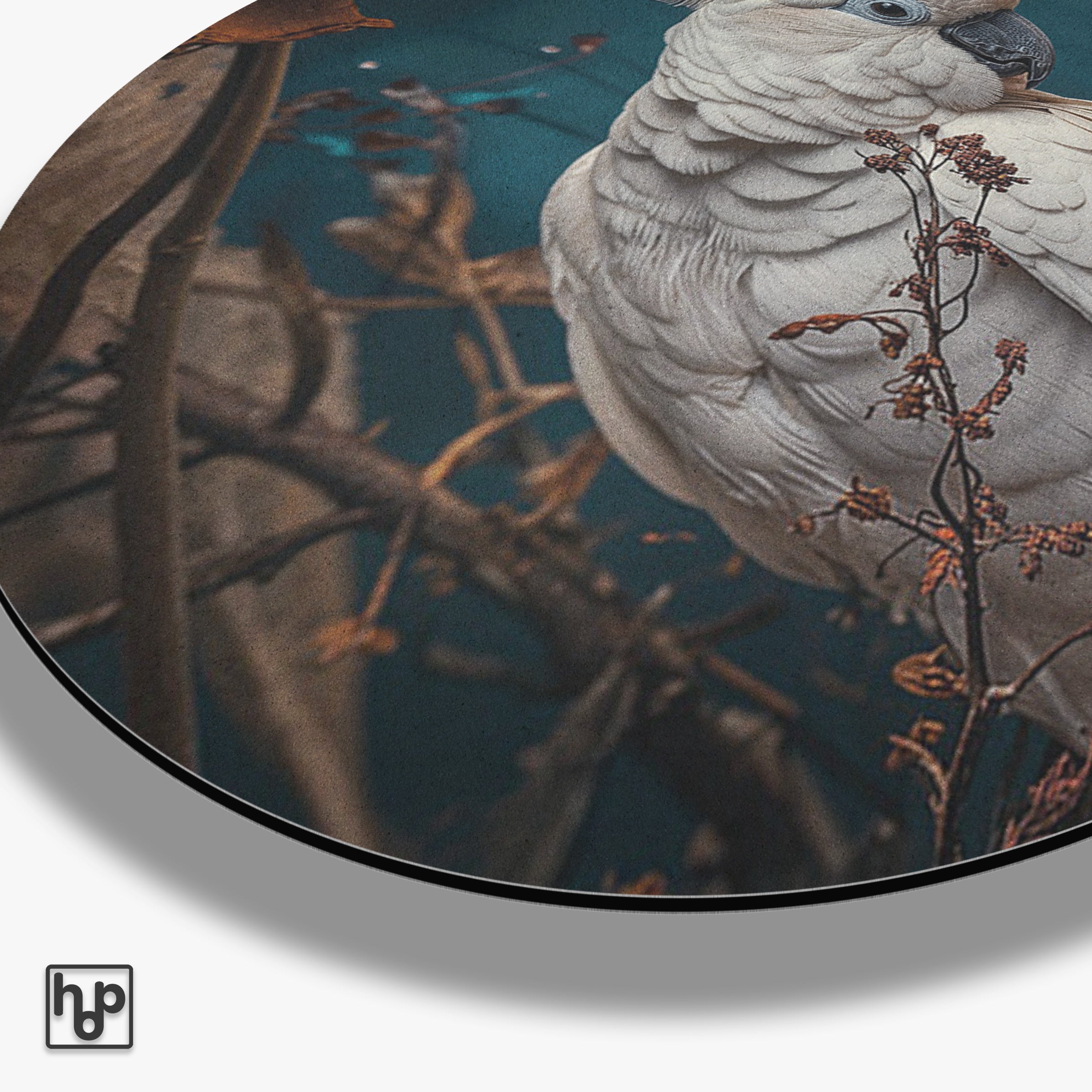 Dit aluminium dibond schilderij onderscheidt zich door de hoogwaardige afwerking en het gebruik van duurzaam materiaal. De matte uitstraling voorkomt storende glans, waardoor de kleuren van de cockatoo diep en levendig overkomen. Dankzij de strakke contouren van de muurcirkel krijg je een moderne wanddecoratie die zowel luxe als tijdloos oogt. Het stevige aluminium dibond zorgt voor een duurzaam kunstwerk dat lang mooi blijft.