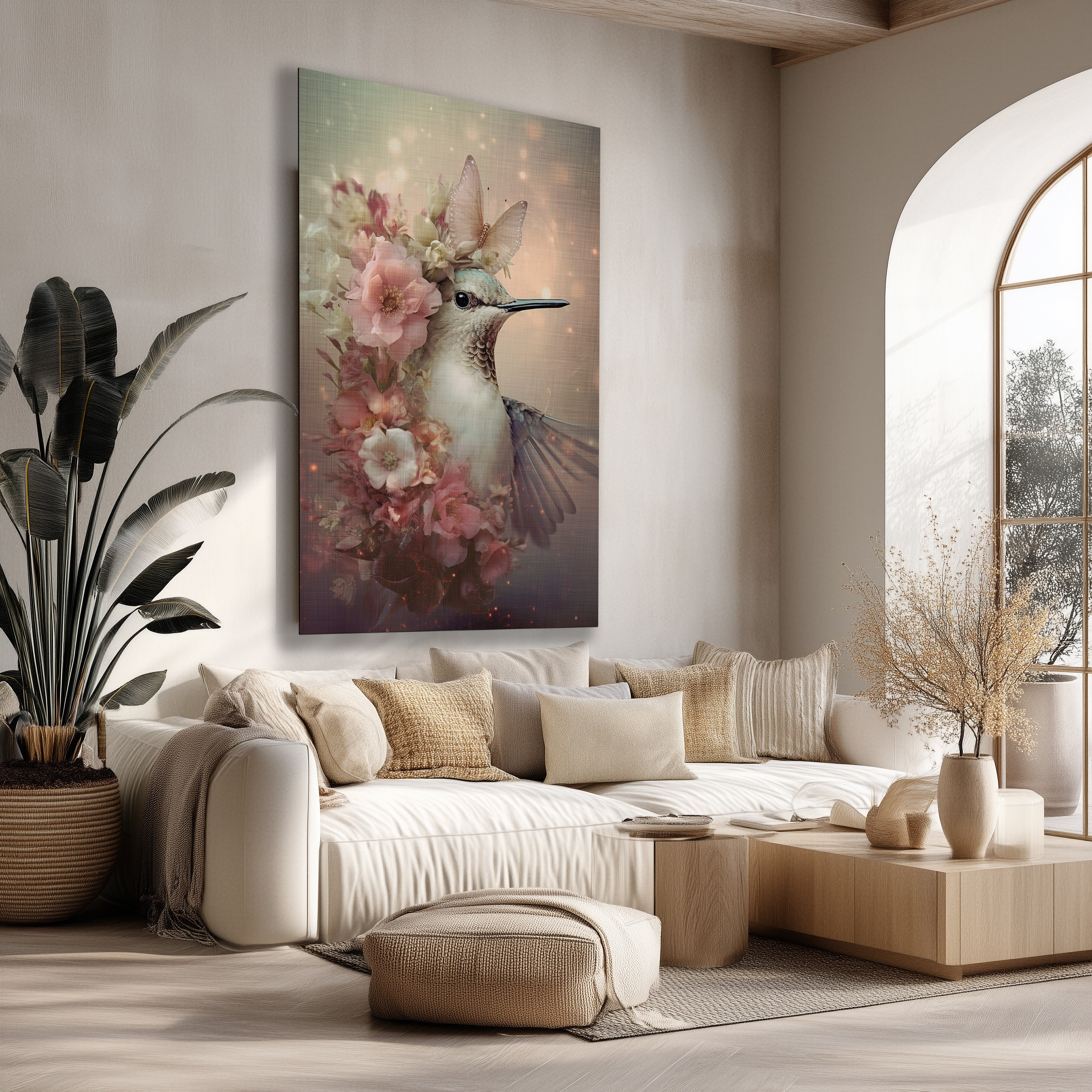 Deze staande poster van een kolibrie straalt een frisse en speelse energie uit, die iedere ruimte een stijlvolle en natuurlijke uitstraling geeft.