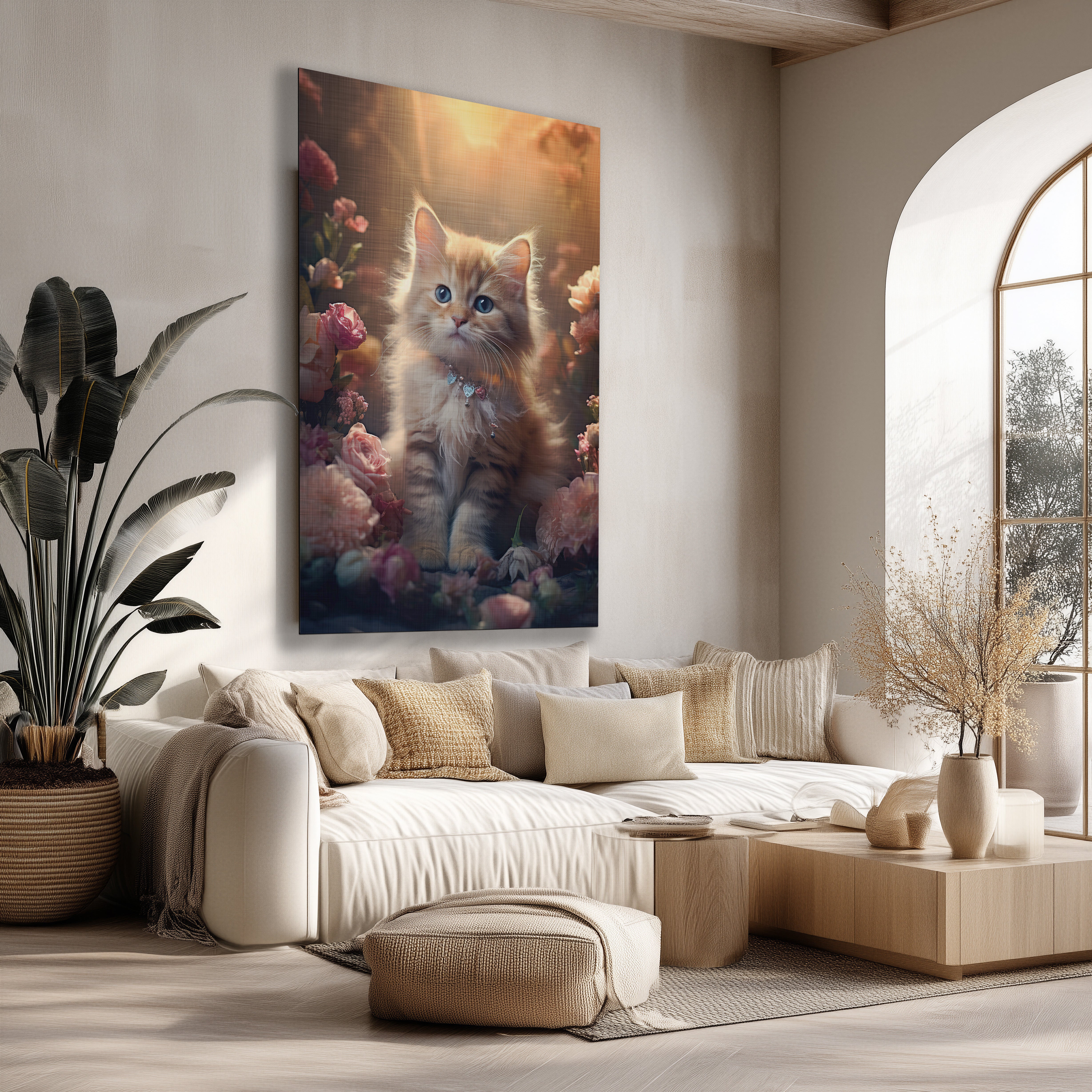 Ervaar een speelse en warme uitstraling met deze botanische poster van een klein katje, die elke ruimte direct een huiselijke sfeer geeft.
