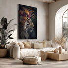 Breng een warme en mysterieuze sfeer in huis met deze krachtige Tiger 5 poster. Het kleurrijke botanische ontwerp met bloemen en veren geeft je muur een stijlvol en speels accent dat elke ruimte versterkt.