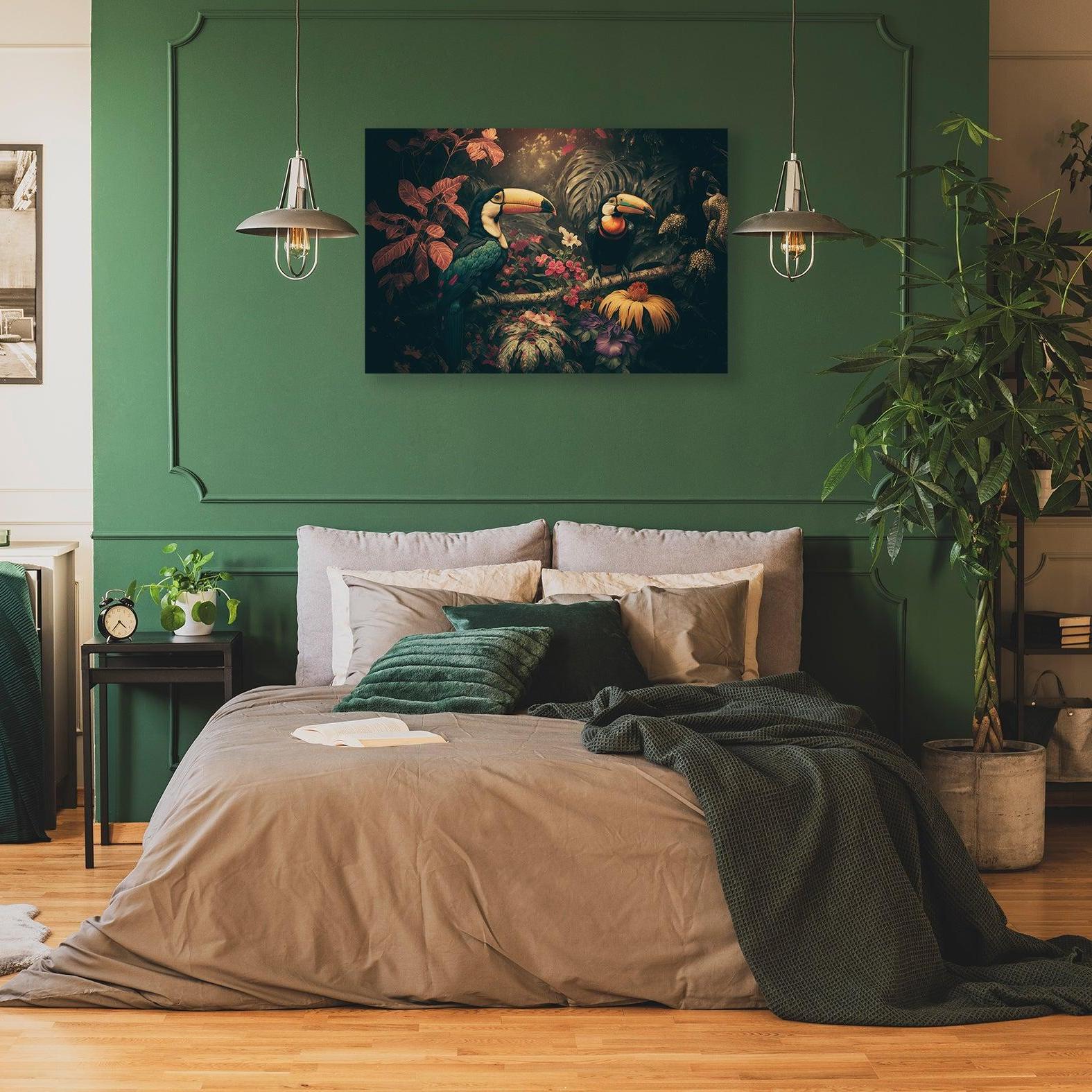 Breng een speelse en natuurlijke sfeer in je interieur met deze levendige poster van toekans. Dit ontwerp versterkt elke ruimte met een vrolijke en uitnodigende uitstraling die even krachtig als rustgevend is.