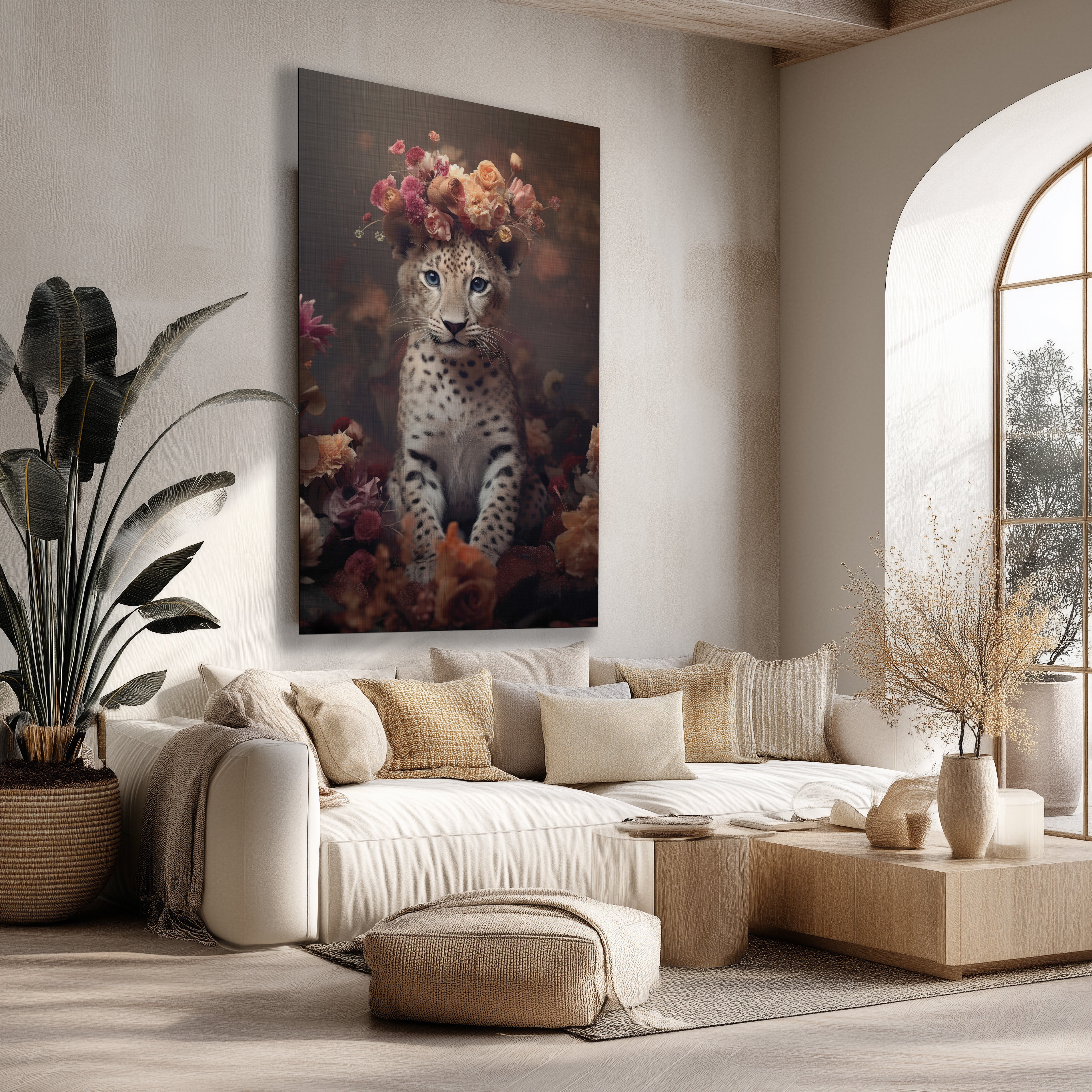 - Woonkamer: Een krachtig schilderij van een leeuw of olifant als middelpunt van je interieur.