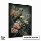 Deze poster brengt een speelse en stijlvolle sfeer in je interieur met een vintage botanisch ontwerp en kleurrijke papegaaien. Het is een subtiel maar levendig muurkunstwerk dat elke ruimte direct versterkt.