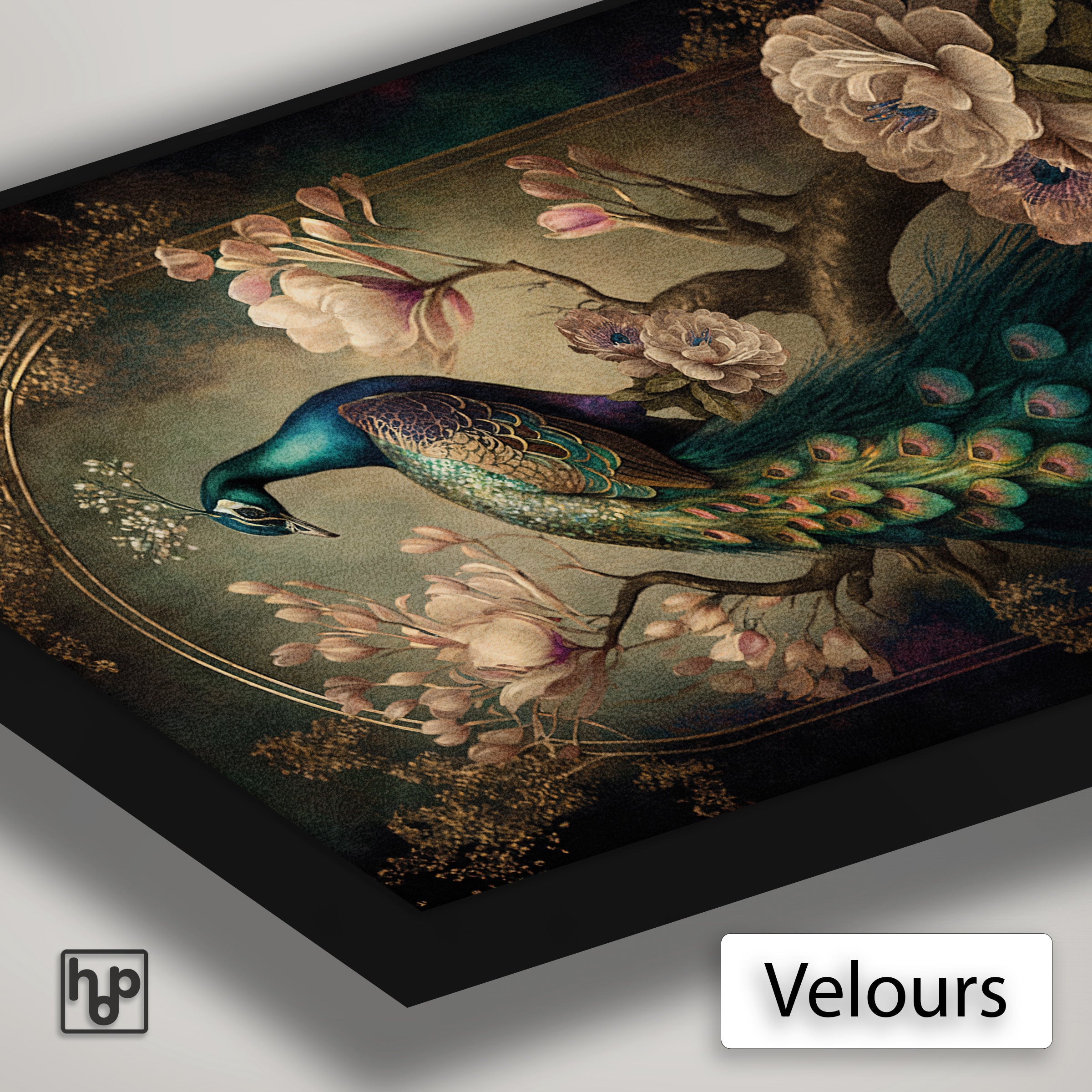 Velours heeft een zachte, fluweelachtige structuur met zijdeglans, waardoor kleuren extra diep en luxe ogen.