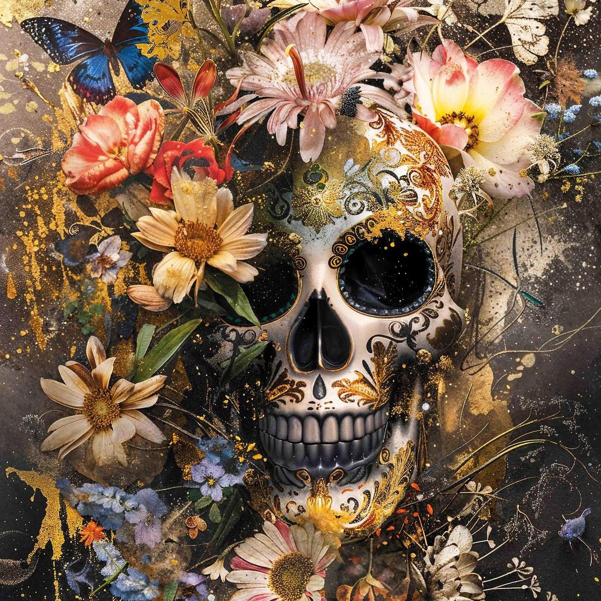 Een krachtig en sfeervol wandkleed dat jouw interieur direct karakter geeft. Het Floral Skull ontwerp combineert natuurlijke bloemen met een edgy schedel, waardoor het een opvallend en speels accent brengt in iedere ruimte.