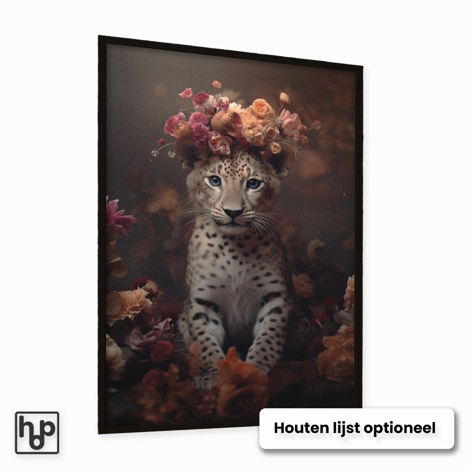 Speels en natuurlijk, deze staande poster van een klein luipaardje brengt een warme jungle-sfeer in elke ruimte. Het ontwerp versterkt je interieur met een subtiel botanisch en dierlijk accent, perfect voor zowel kinderkamers als gezellige woonkamers.