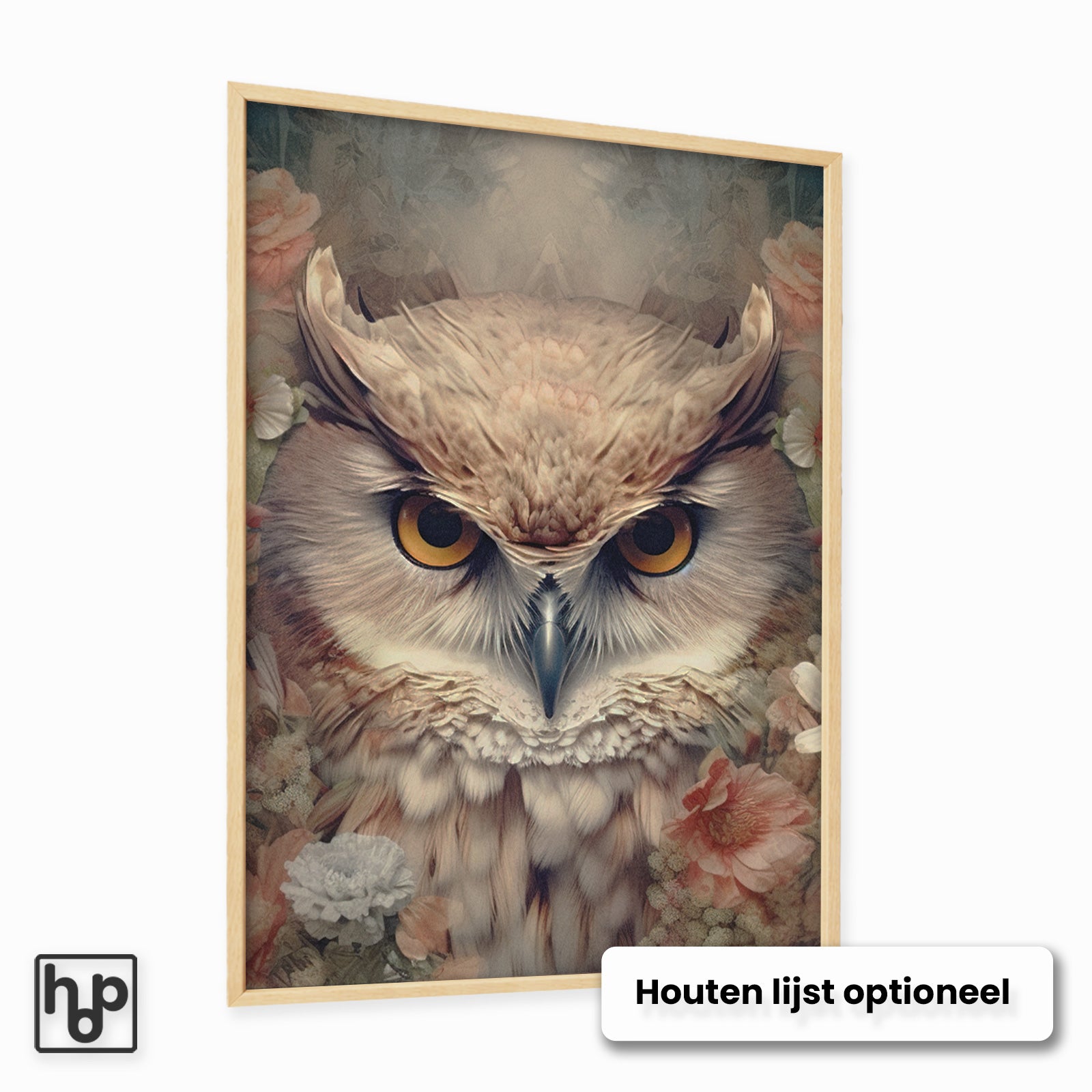 Breng een warme, natuurlijke sfeer in huis met de Owl 8 poster, een stijlvol muuraccent dat rust en mysterie combineert. Dankzij het botanische ontwerp met zachte vintage tinten versterkt deze wanddecoratie elke ruimte met een tijdloze uitstraling.