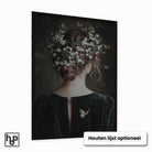 Dit designposter met een expressief vrouwelijk portret brengt subtiele contrasten en zachte tinten samen, wat zorgt voor een harmonieus en sfeervol geheel. Perfect als wanddecoratie in de woonkamer, slaapkamer of hal, waar het een stijlvol muuraccent vormt. Dankzij het botanische thema en het rustige kleurgebruik past dit kunstwerk moeiteloos binnen uiteenlopende woonstijlen zoals zen, Japandi of Scandinavisch.