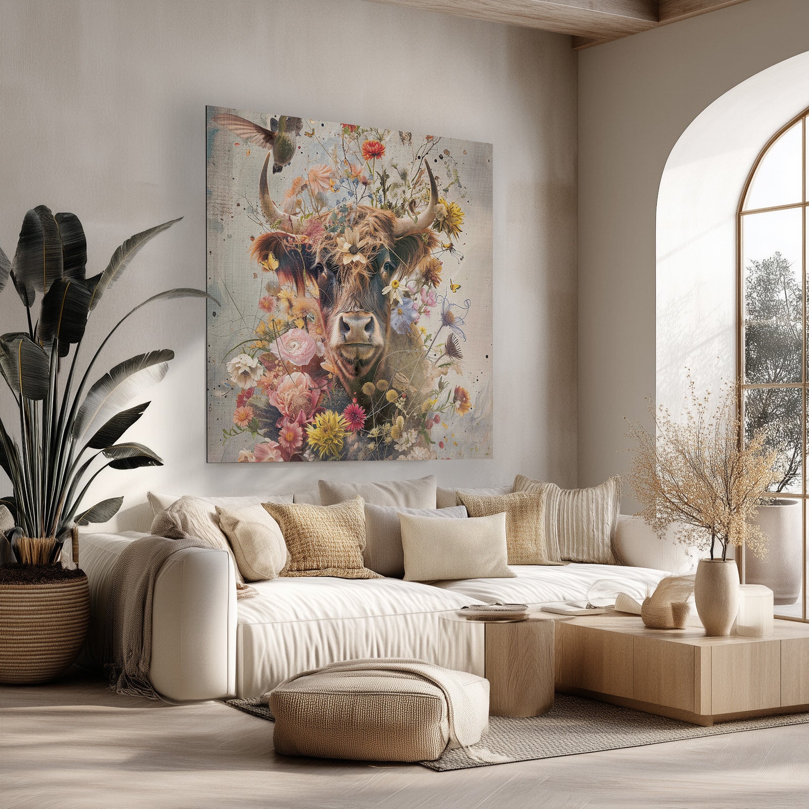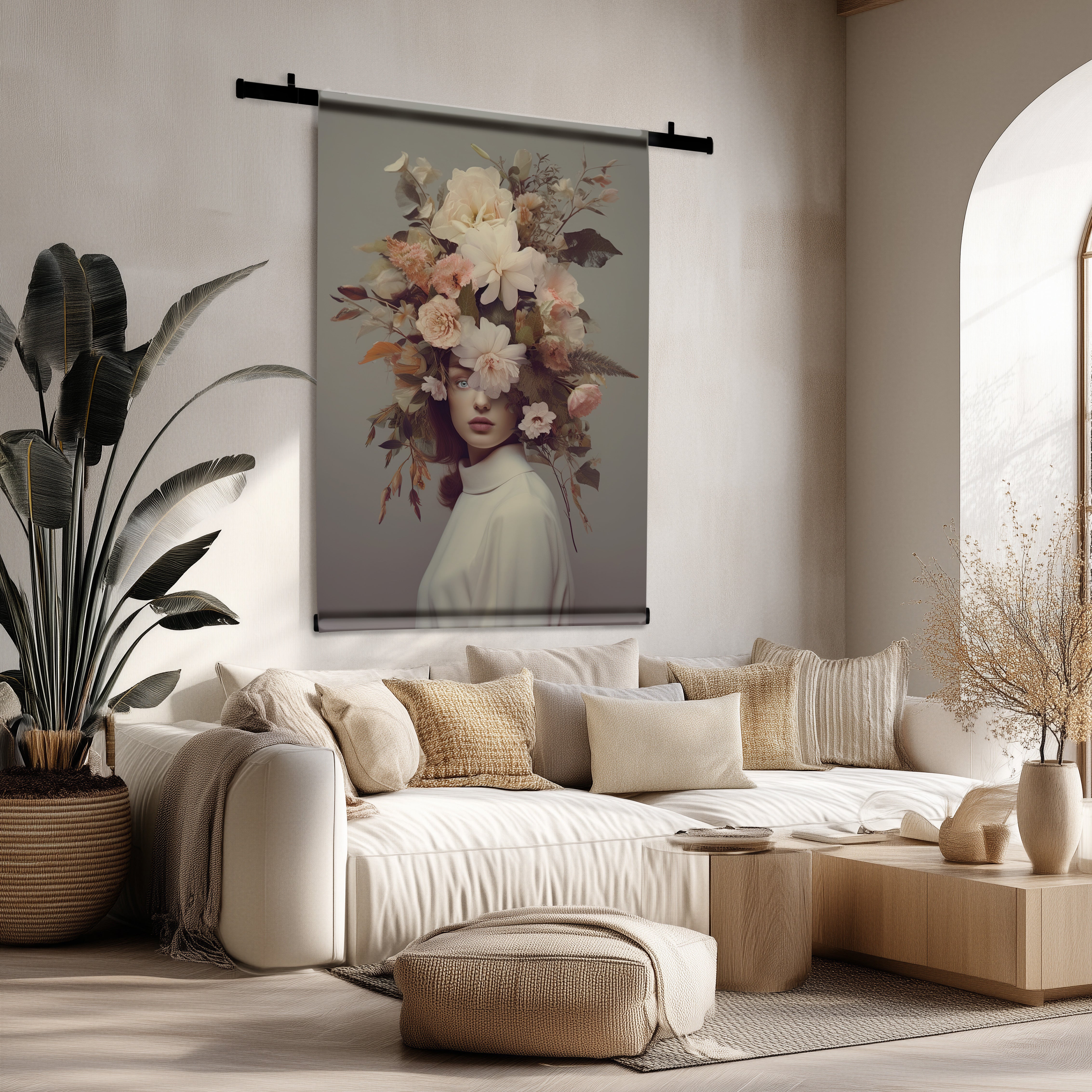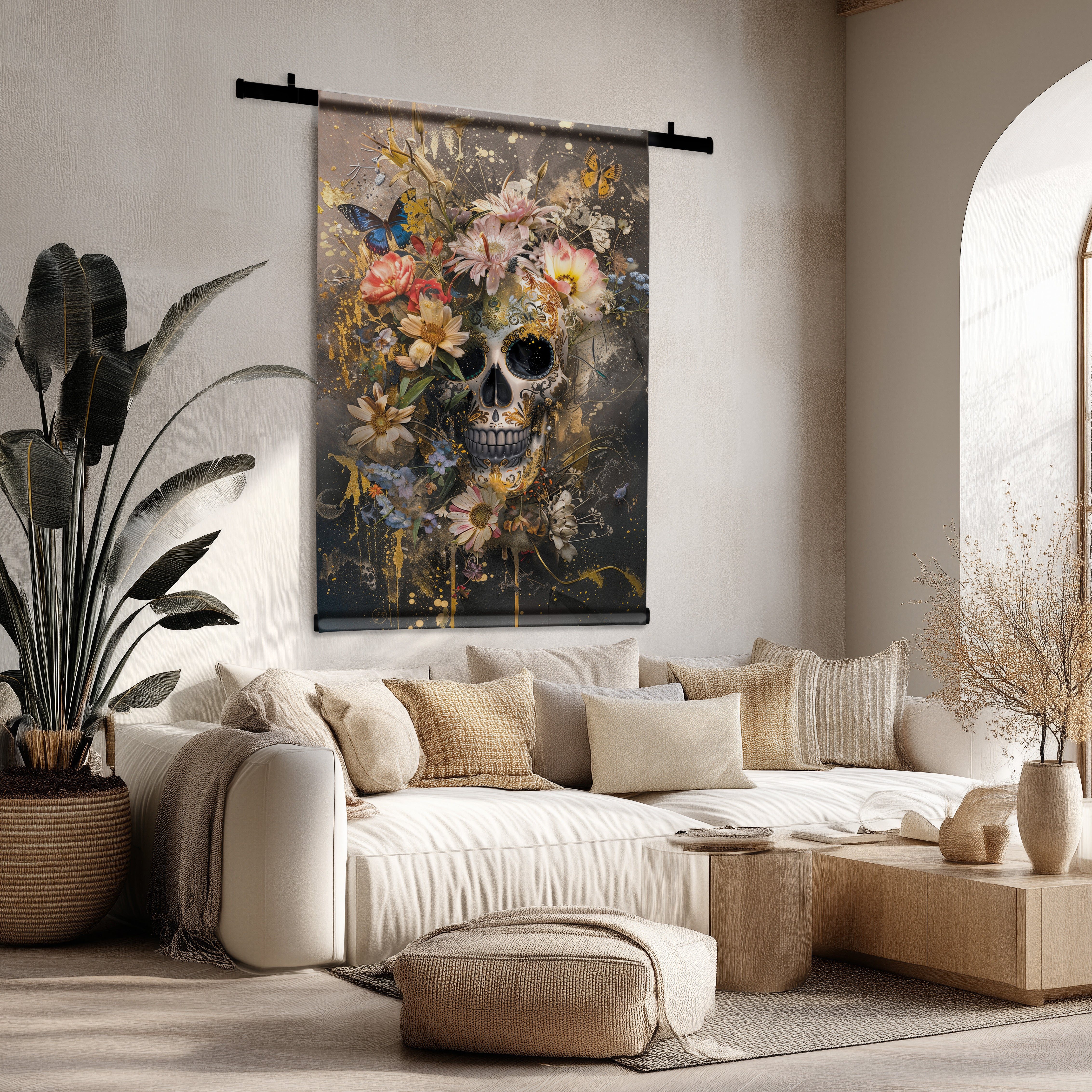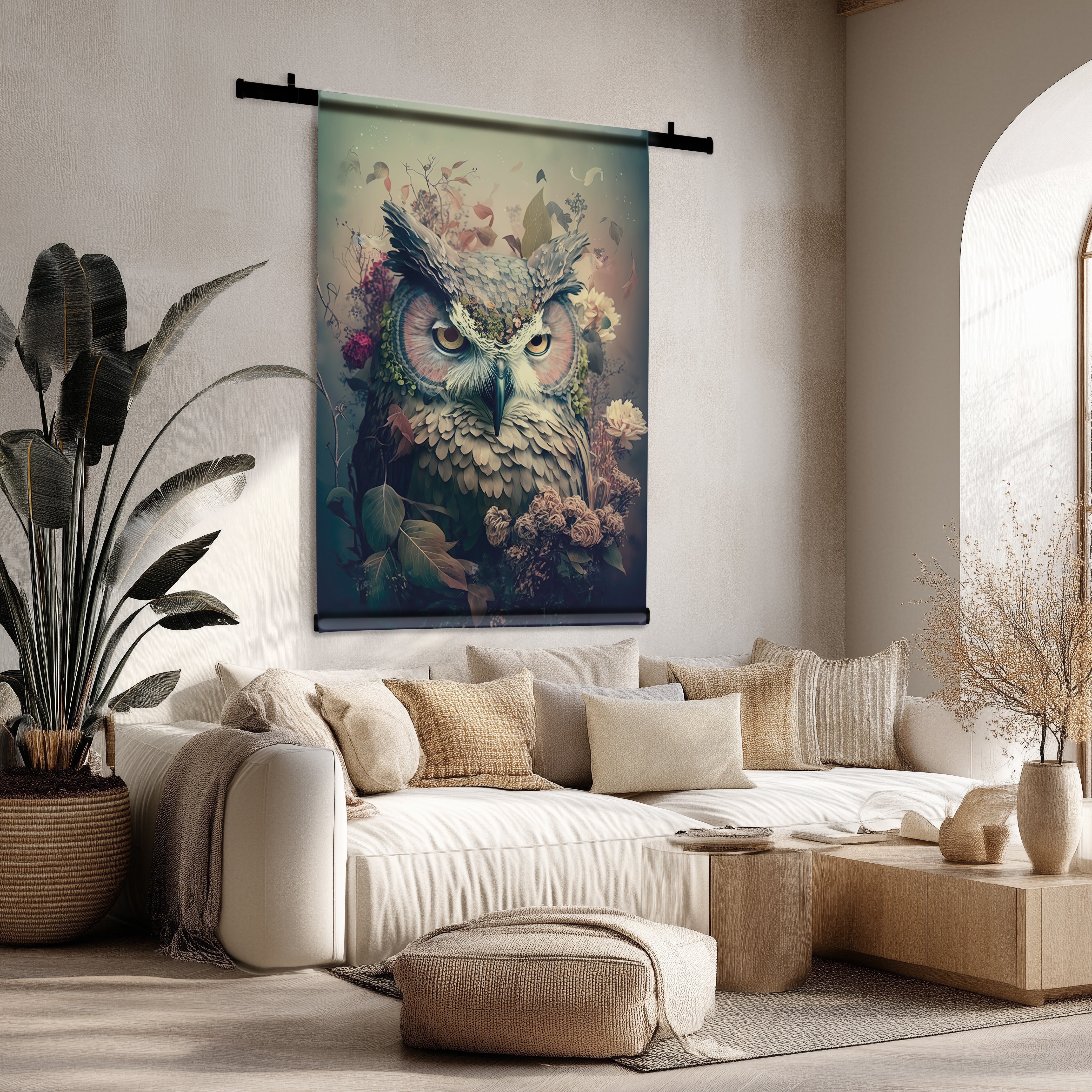 - In de woonkamer zorgen grote wandkleden voor een indrukwekkende eyecatcher.