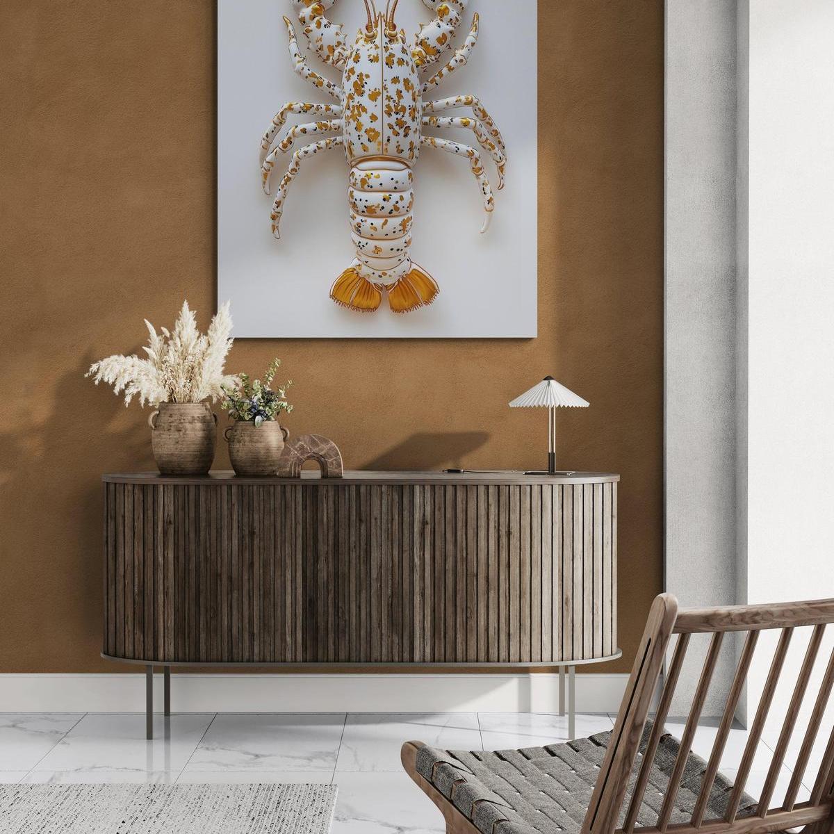 Wanddecoratie met stoere materialen zoals aluminium, canvas of textiel. Denk aan donkere kleuren, ruwe texturen en abstracte prints.
