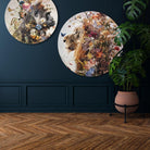 Deze stijlvolle muurcirkel combineert de dromerige uitstraling van bloemen met de imposante aanwezigheid van een gorilla, wat zorgt voor een opvallend, rond kunstwerk. Perfect voor zowel de woonkamer als de slaapkamer, brengt dit bijzondere wandaccent een natuurlijke en sfeervolle touch in elk interieur. De combinatie van dieren en botanische elementen maakt het een uniek design dat zeker de aandacht trekt.