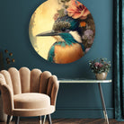 Deze muurcirkel voegt direct sfeer toe aan je woonkamer, slaapkamer of werkplek dankzij het zachte kleurpalette en het natuurlijke contrast van de ijsvogel. Het design combineert vintage charme met botanische elementen, wat zorgt voor een kalmerend en tegelijk inspirerend visueel effect. Je kiest zelf het materiaal: aluminium dibond voor een moderne, matte uitstraling; plexiglas voor diepe kleurintensiteit; of een behangcirkel voor een zachte, naadloze wanddecoratie. Dankzij dit unieke kunstwerk past het perfect in woonstijlen als landelijk, bohemian en zen/japandi. Het is een stijlvol muuraccent dat rust en karakter brengt in elk interieur.