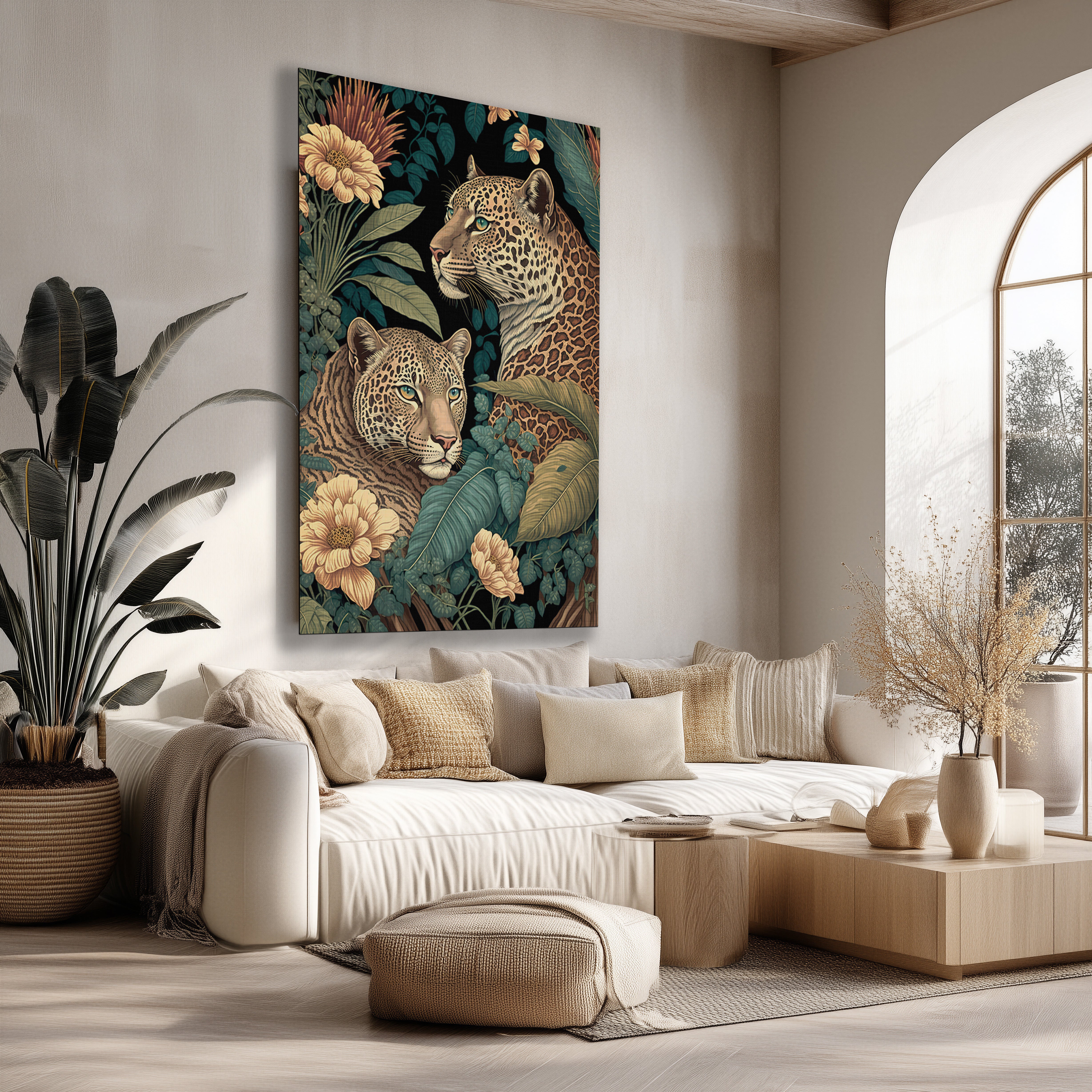 Breng de mysterieuze sfeer van de jungle direct in huis met deze stijlvolle poster. De twee sierlijke luipaarden vormen een krachtig, maar natuurlijk accent dat elke ruimte verrijkt.