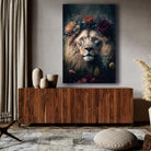 Deze wanddecoratie toont een leeuw omringd door weelderige bloemen, wat zorgt voor een warme en sfeervolle ambiance in je woonkamer, slaapkamer of werkplek. De levendige kleuren en het botanische thema brengen een uniek ontwerp dat harmonie en energie combineert. Perfect passend bij interieurstijlen zoals landelijk, zen/japandi, en scandinavisch, biedt dit kunstwerk een stijlvol accent dat zowel rust als karakter toevoegt.