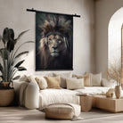 Het kunstwerk is vervaardigd van hoogwaardig velours polyester, wat niet alleen zorgt voor een fluweelzachte textuur, maar ook een subtiele zijdeglans geeft. Door de robuuste maar elegante uitstraling wordt dit wandkleed een sfeervol middelpunt in je woonkamer, slaapkamer of werkplek. De combinatie van een artistieke leeuwenafbeelding met luxe materiaal maakt het een tijdloze wanddecoratie die jouw muur omtovert tot een levendig en warm accent.
