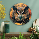Deze stijlvolle muurcirkel brengt een warme en natuurlijke sfeer in elke ruimte, dankzij het elegante ontwerp van een sierlijke uil omringd door botanische elementen. Het is een krachtig en sfeervol muuraccent dat direct karakter toevoegt aan je interieur.