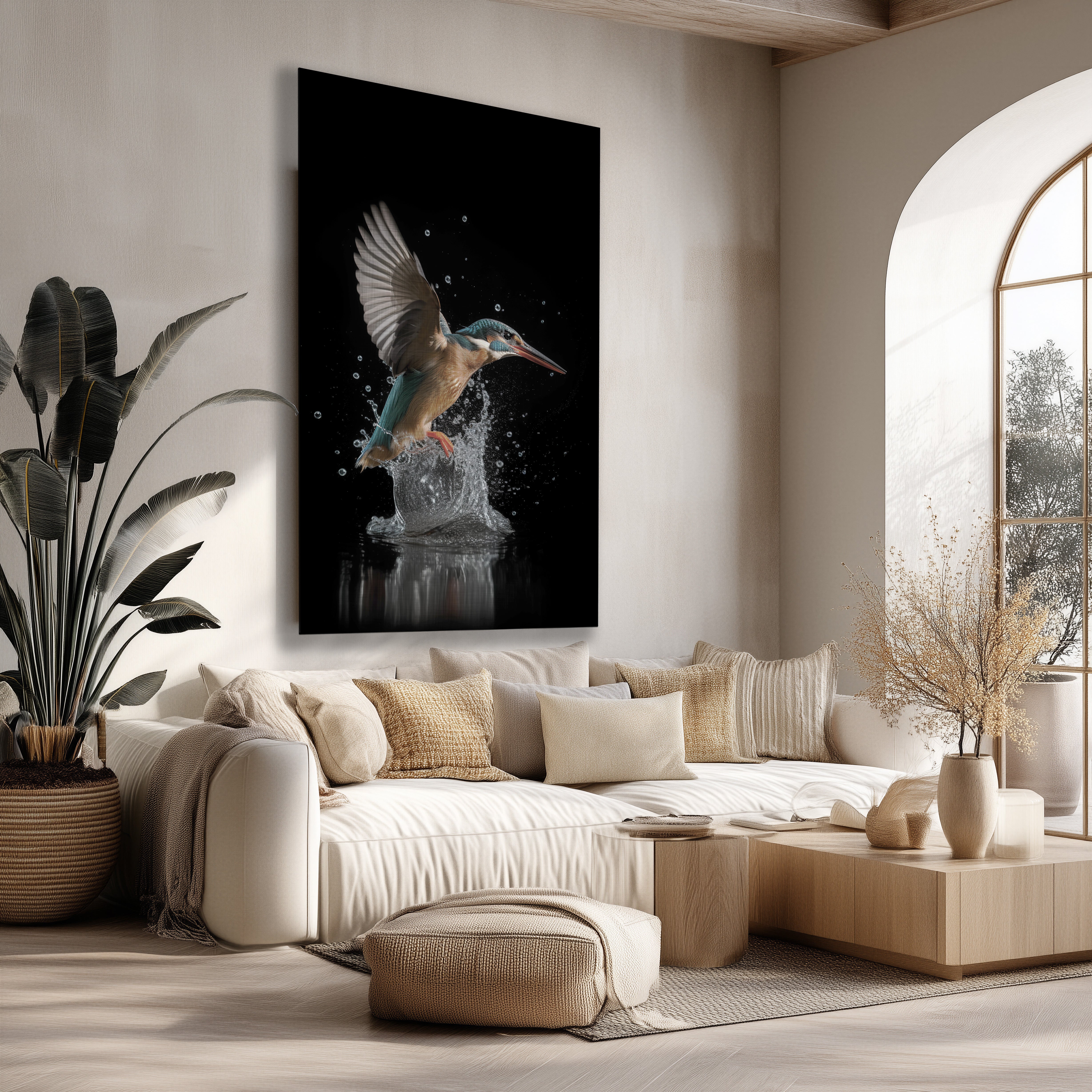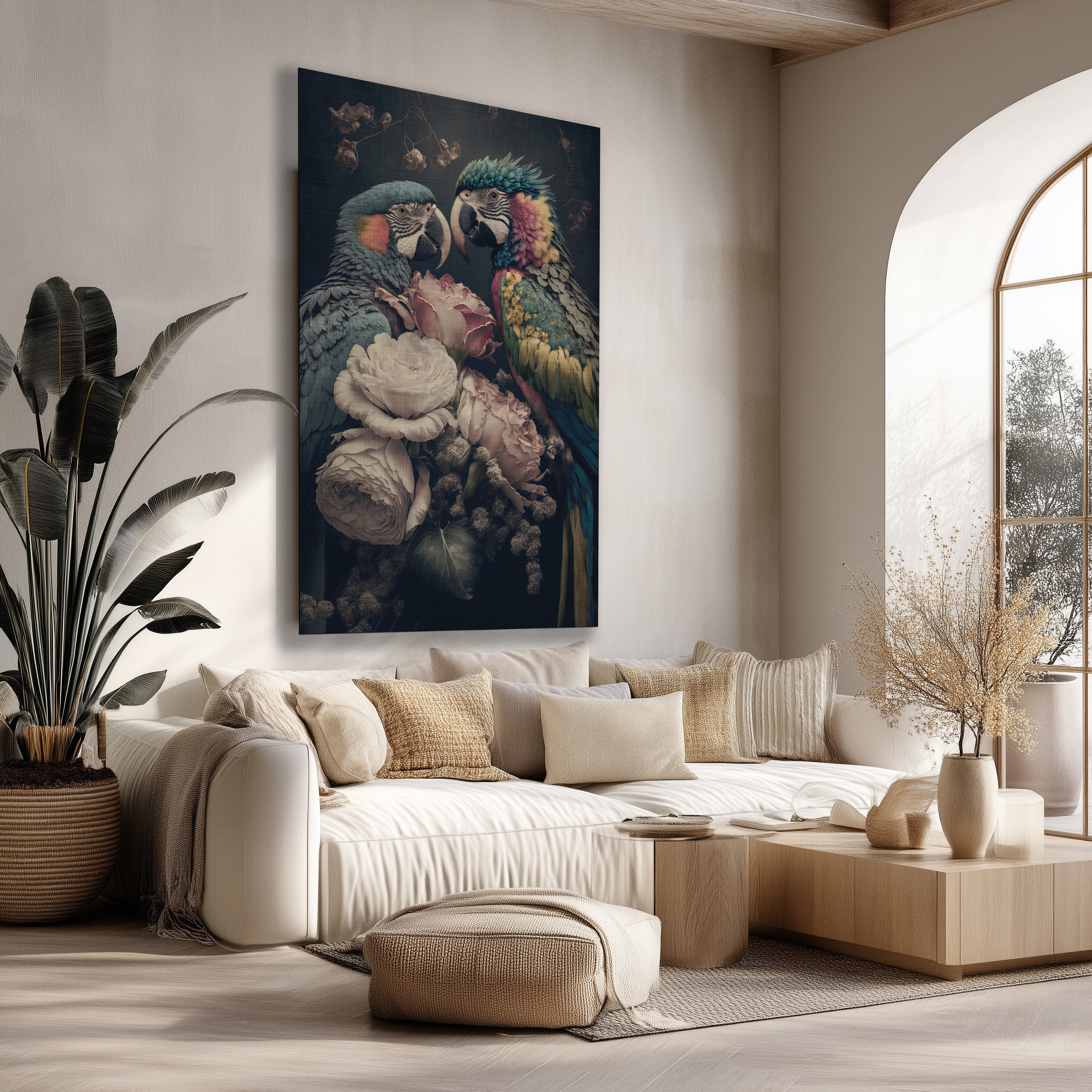 Landelijke muurdecoratie komt het best tot zijn recht in combinatie met natuurlijke materialen zoals hout, rotan en linnen. Kies voor warme tinten zoals beige, zand, bruin en zacht groen. Zo ontstaat een harmonieus geheel dat de landelijke stijl versterkt. Een groot schilderij boven de bank of een set landelijke posters in de hal maakt direct een statement.