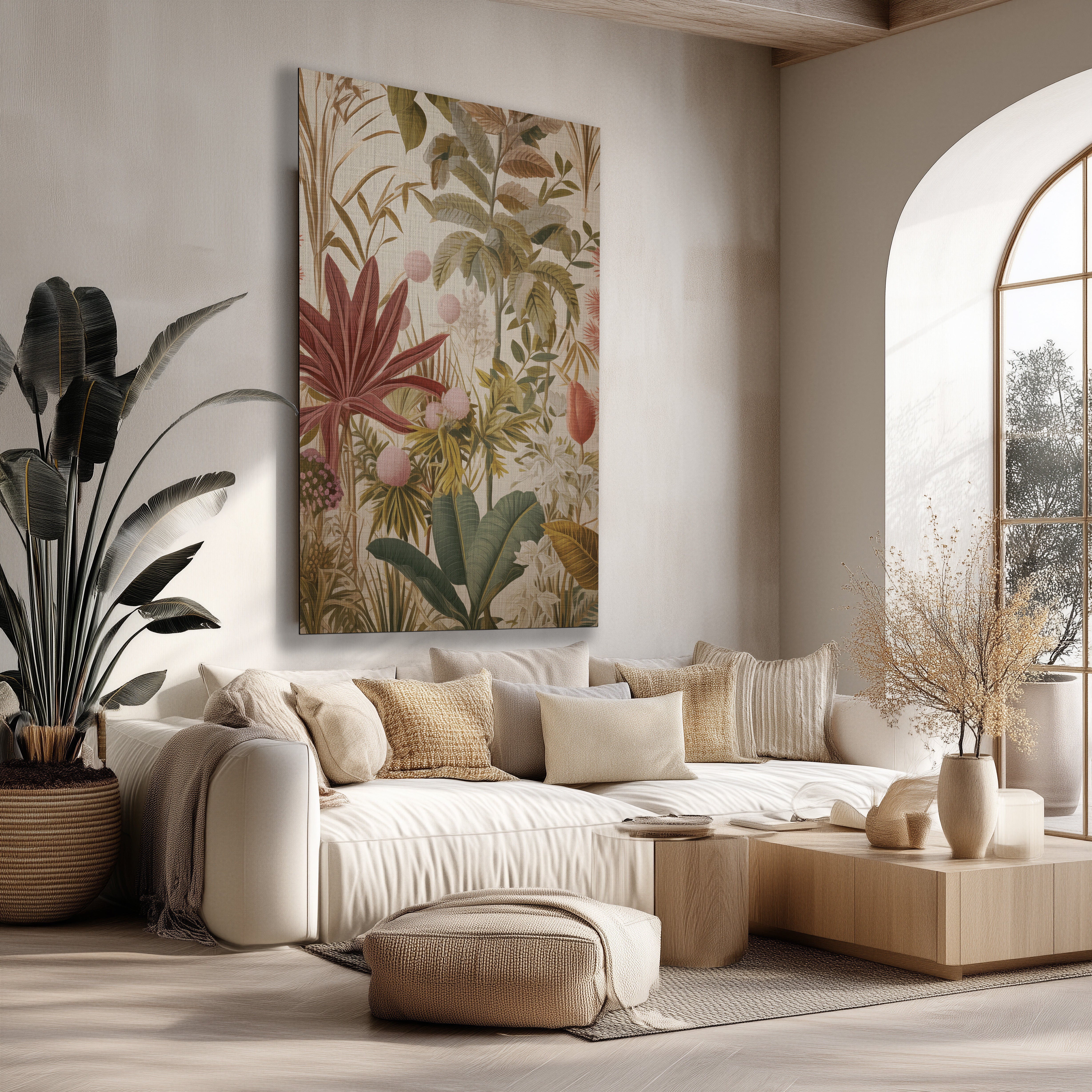 Landelijke muurdecoratie komt het best tot zijn recht in combinatie met natuurlijke materialen zoals hout, rotan en linnen. Kies voor warme tinten zoals beige, zand, bruin en zacht groen. Zo ontstaat een harmonieus geheel dat de landelijke stijl versterkt. Een groot schilderij boven de bank of een set landelijke posters in de hal maakt direct een statement.