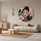 Deze muurcirkel van aluminium dibond, met het ontwerp Lucy · Aluminium, straalt een rustige, stijlvolle sfeer uit. Het kunstwerk toont een serene vrouw met zachte, natuurlijke tinten die een warme en verfijnde ambiance aan jouw woonkamer, slaapkamer of kantoor toevoegen. Door de ronde vorm wordt de ruimte optisch verrijkt en ontstaat een harmonieuze balans die perfect past in een modern interieur.