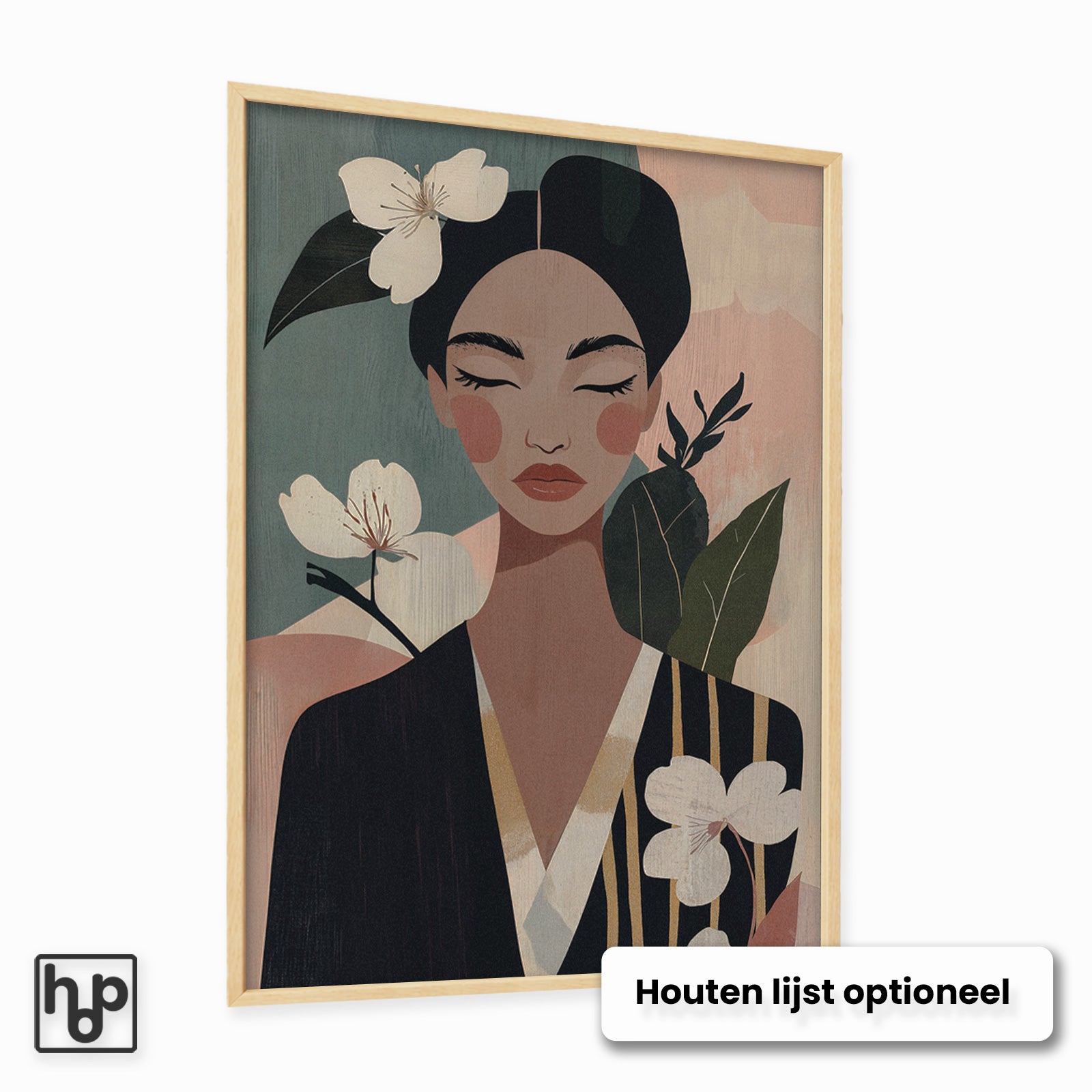 Deze poster straalt een speelse en warme boho-sfeer uit die elke ruimte direct opfrist en een botanische uitstraling geeft. Door het levendige portret met subtiele Aziatische accenten krijgt je interieur een unieke en frisse uitstraling.