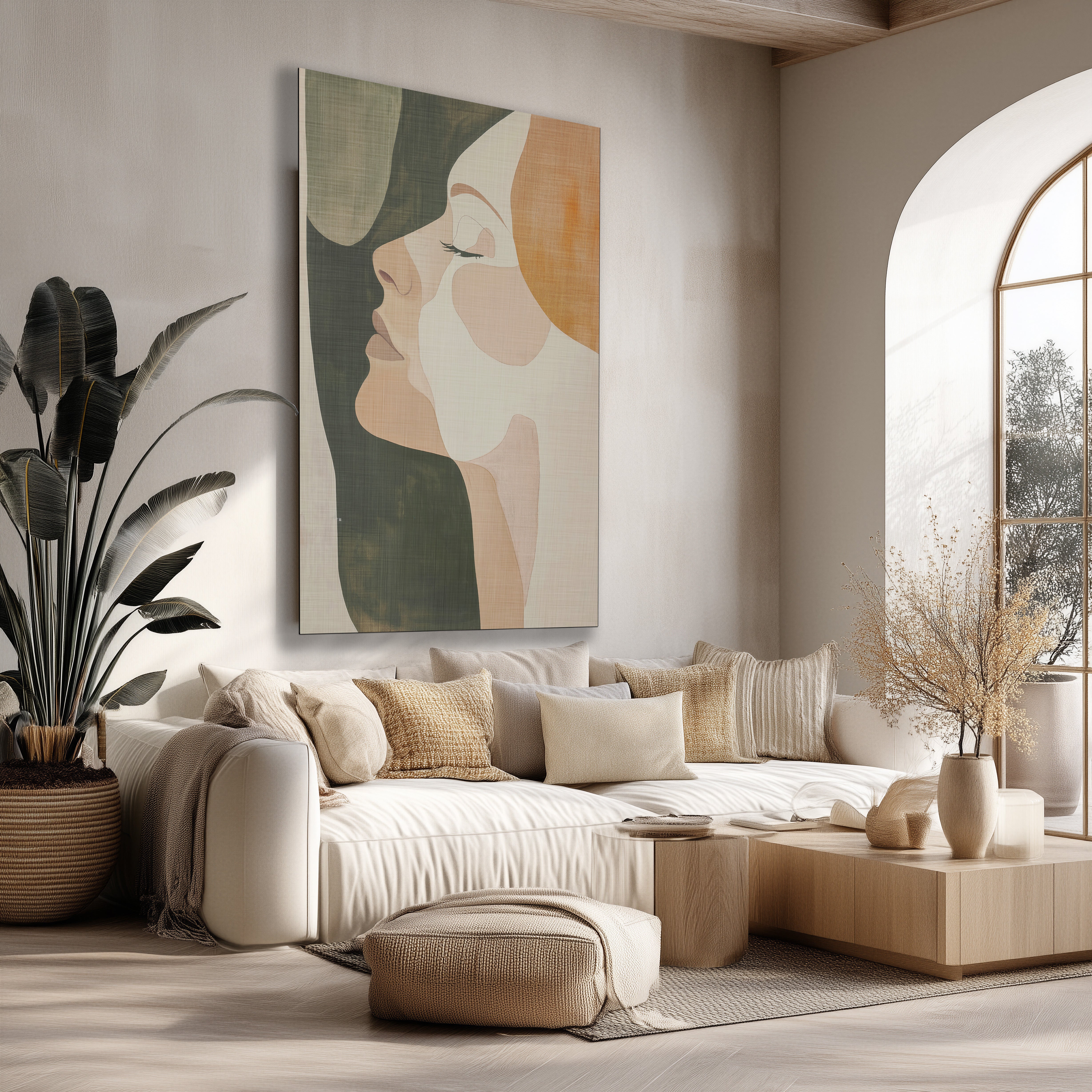 Deze wanddecoratie voegt een zachte, vrouwelijke energie toe aan je woonkamer, slaapkamer of werkplek. De subtiele kleuren en vloeiende lijnen creëren een harmonieus visueel effect dat rust en inspiratie uitstraalt. Dankzij de smalle, staande vorm is deze designposter ideaal voor smalle muren en past hij perfect bij een boho, Scandinavisch of modern interieur. Dit kunstwerk brengt daarmee een uniek en sfeervol muuraccent dat zowel warm als stijlvol is.