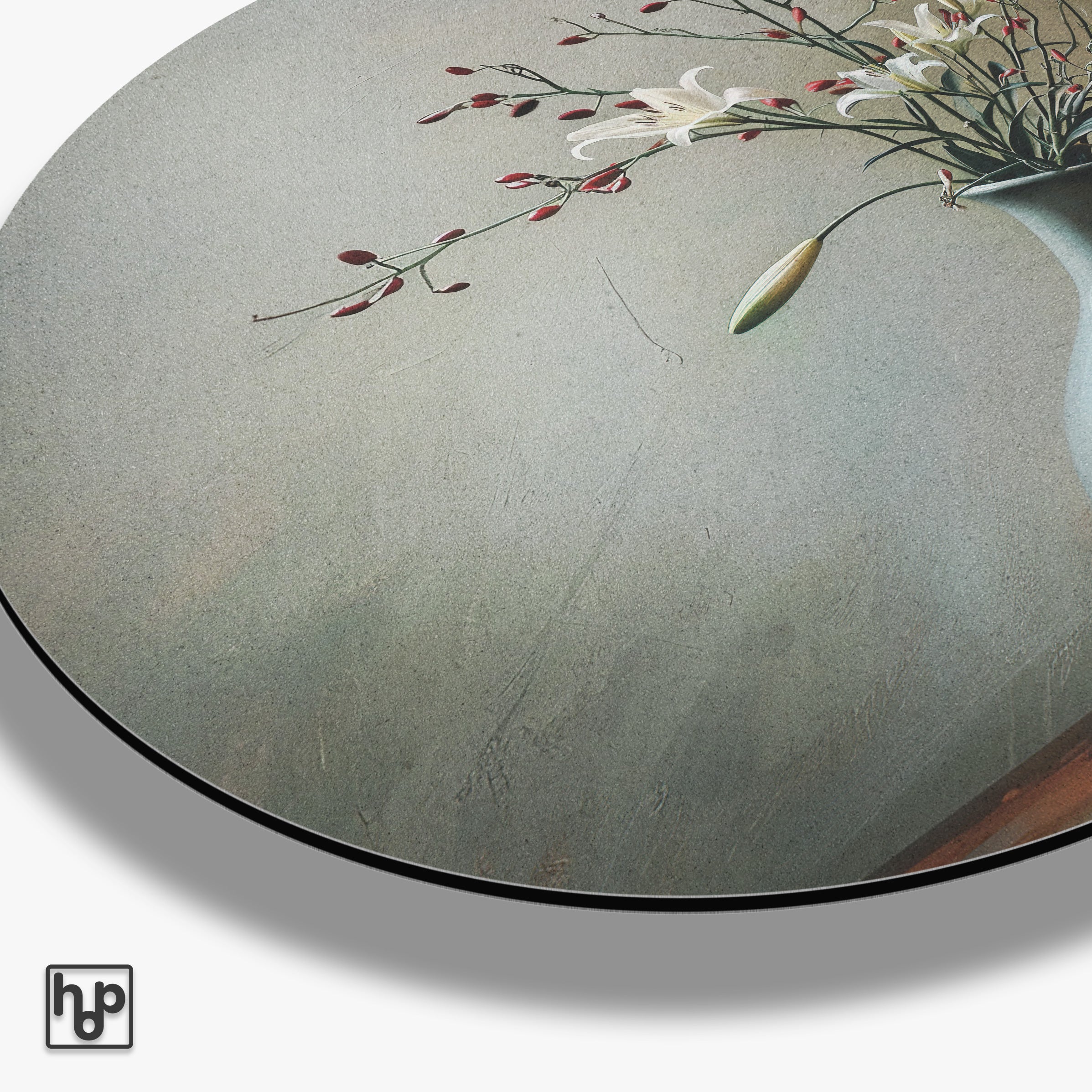 Deze muurcirkel van aluminium dibond, getiteld Flowers 13 · Aluminium, straalt een tijdloze elegantie uit door het subtiele bloemenontwerp met witte en rode accenten. Het kunstwerk past perfect in een moderne woonkamer, slaapkamer of kantoor, waar het de ruimte een rustgevende en natuurlijke sfeer geeft. De zachte, matte achtergrond en het fijne detail van het bloemmotief zorgen voor een verfijnde uitstraling die elke muur direct opwaardeert.