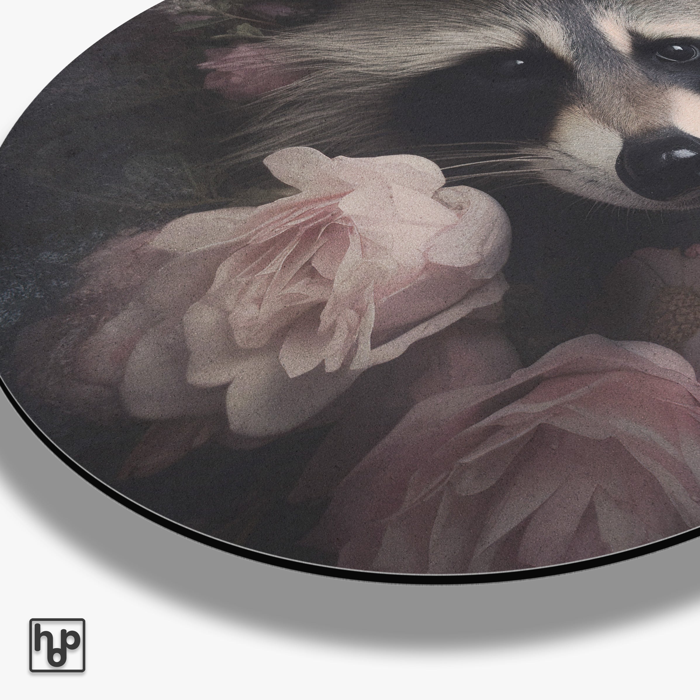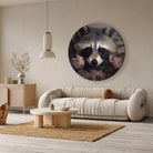 Deze muurcirkel van aluminium dibond met het ontwerp van een wasbeer creëert een warme en natuurlijke sfeer in jouw interieur. De zachte kleuren en gedetailleerde weergave van het dier en de bloemen zorgen voor een rustige, stijlvolle uitstraling. Dit aluminium wanddecoratie kunstwerk past perfect in een moderne woonkamer, slaapkamer of kantoor en geeft de ruimte een unieke en uitnodigende sfeer.