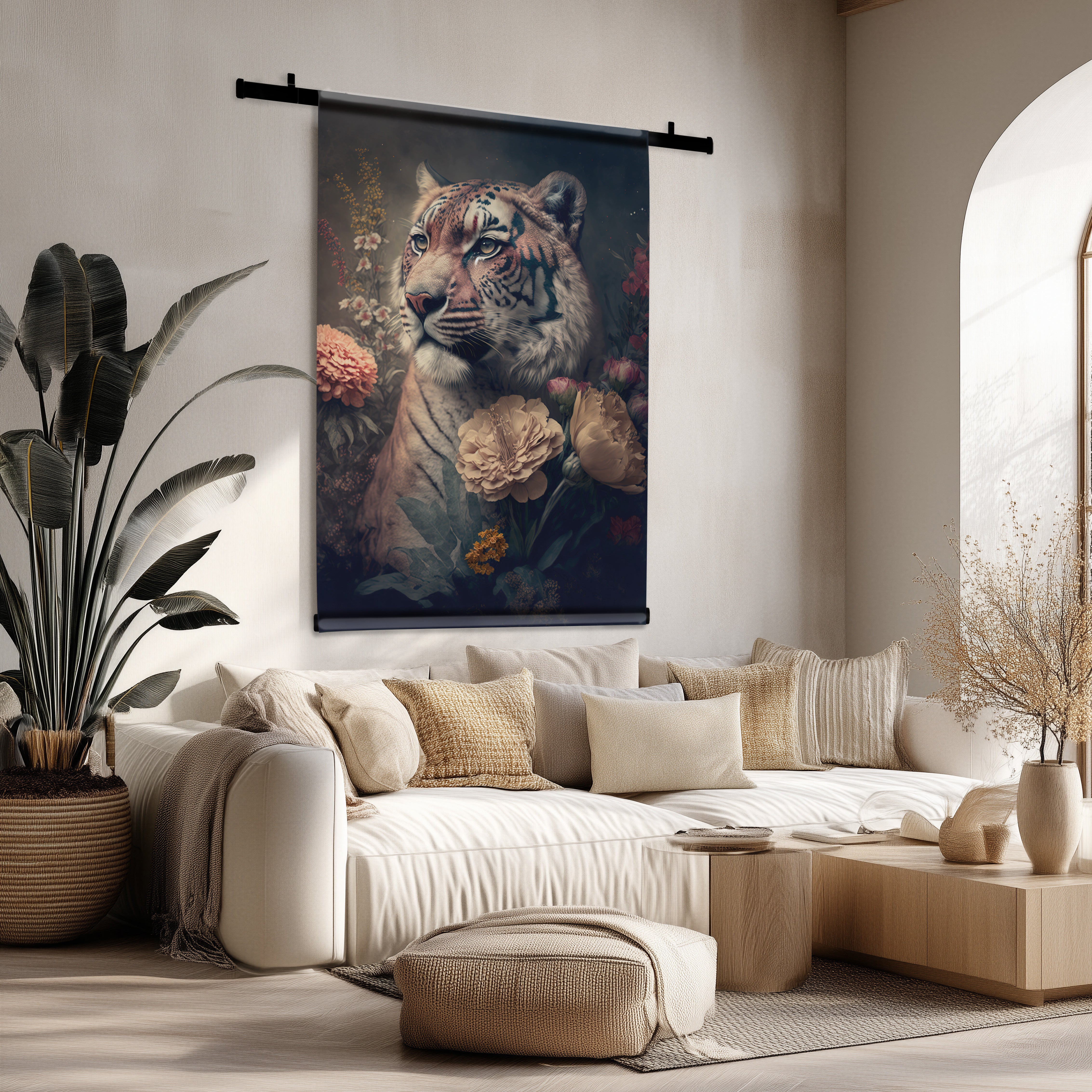 Ervaar de kracht en mystiek van de jungle in je eigen interieur met dit prachtige Tiger wandkleed. Laat je meevoeren door het indrukwekkende design dat rust en kracht combineert, perfect voor wie zijn woonruimte een sfeervolle en unieke uitstraling wil geven.