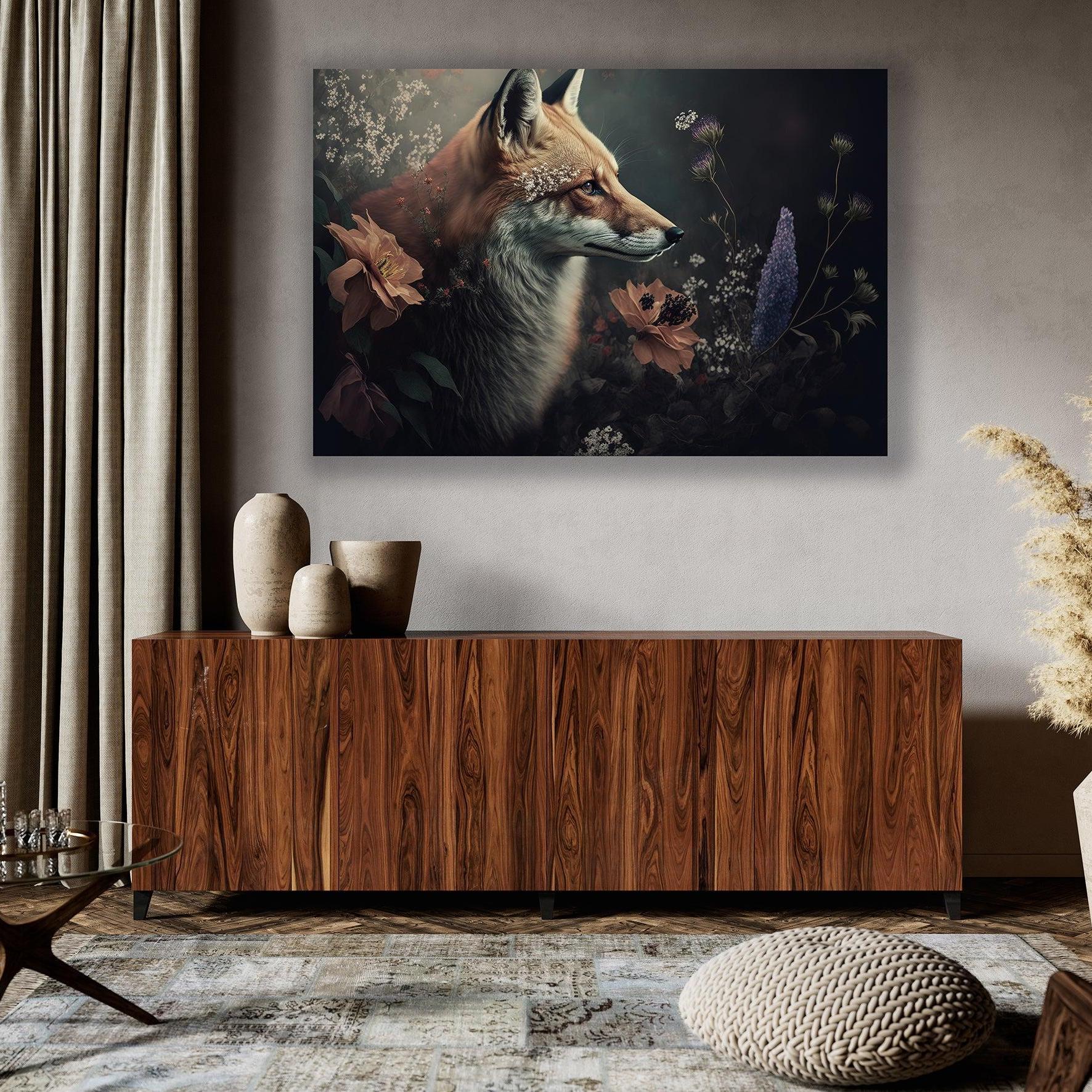 Een warme en rustige sfeer in huis begint met de juiste wanddecoratie. Deze botanische poster van een sierlijke vos, liggend vormgegeven, versterkt elke ruimte met een harmonieuze en natuurlijke uitstraling.