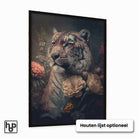 Deze staande poster met krachtige tijgerillustratie en botanische details geeft elke ruimte een stijlvolle en natuurlijke uitstraling. Het design combineert avontuur met rust, en versterkt de sfeer in je interieur met een uniek en speels element.