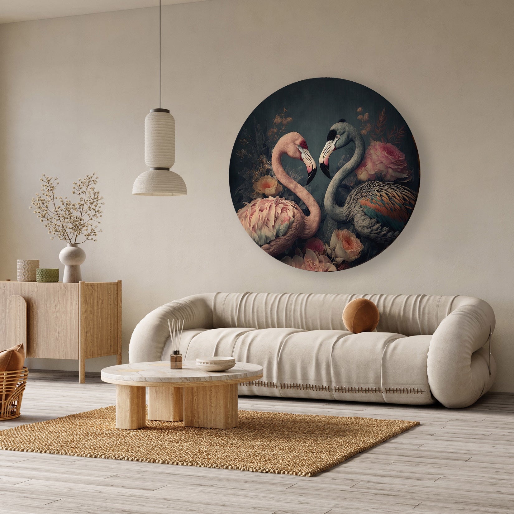 Bloemen Flamingo's · Muurcirkel-Muurcirkel-House of Posters-House of Posters
