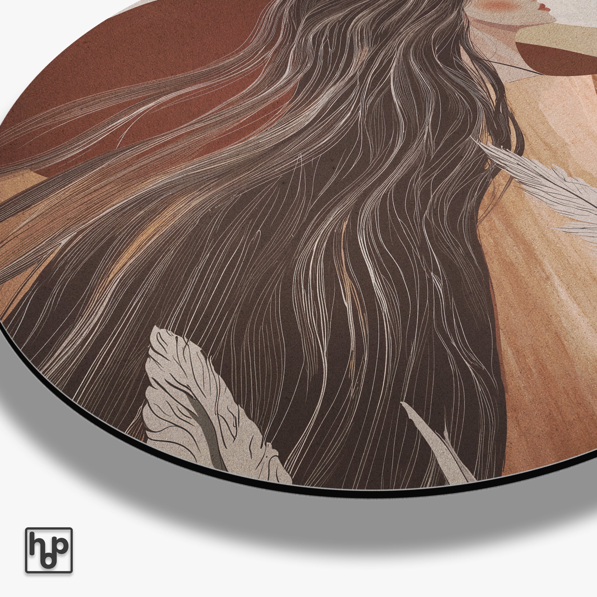 Deze muurcirkel van aluminium dibond met het ontwerp Noa · Aluminium brengt een natuurlijke en warme sfeer in jouw interieur. De zachte aardetinten gecombineerd met het gestileerde portret creëren een stijlvolle uitstraling die perfect tot zijn recht komt in moderne woonkamers, slaapkamers of kantoren. Het kunstwerk zorgt voor een kalme en tegelijkertijd karaktervolle toevoeging aan de muur, waardoor de ruimte direct een persoonlijk en rustgevend effect krijgt.