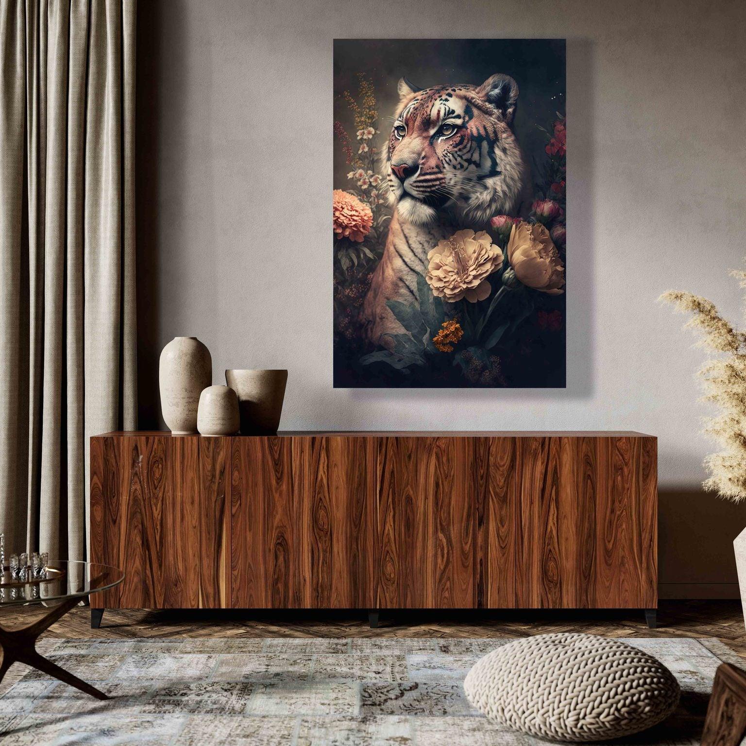 Laat je betoveren door de krachtige uitstraling van deze staande poster met een prachtige tijger als botanisch geïnspireerd design. Dit unieke kunstwerk brengt een gevoel van avontuur en natuur in elke ruimte waar je het ophangt. Perfect om thuis te komen in een sfeervolle omgeving die zowel rust als kracht uitstraalt.