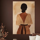 Deze designposter in zachte aardetinten voegt direct sfeer toe aan je woonkamer, slaapkamer of werkplek. De warme kleuren en het subtiele contrast creëren een sfeervol en uitnodigend muuraccent. Dankzij het staande formaat is deze wanddecoratie perfect geschikt voor diverse woonstijlen, zoals bohemian, modern, zen/japandi en landelijk. De unieke combinatie van vrouwelijk portret en warme kleurtonen geeft je interieur een stijlvol en persoonlijk karakter.