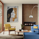 Een stijlvol en rustig ontwerp dat warmte en vrouwelijke elegantie toevoegt aan je interieur. De Tilde | Poster staand is een uniek muuraccent met zachte kleuren en vloeiende lijnen die elke ruimte kalmeren.