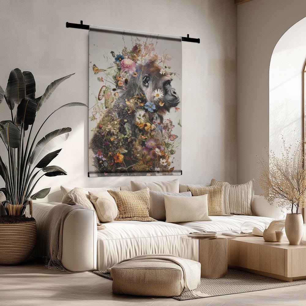 Breng een krachtige en toch zachte sfeer in huis met het Floral Gorilla wandkleed. Dit unieke wanddecoratie combineert de levendigheid van bloemen met de expressieve kracht van een gorilla, waardoor elke ruimte direct karakter krijgt.