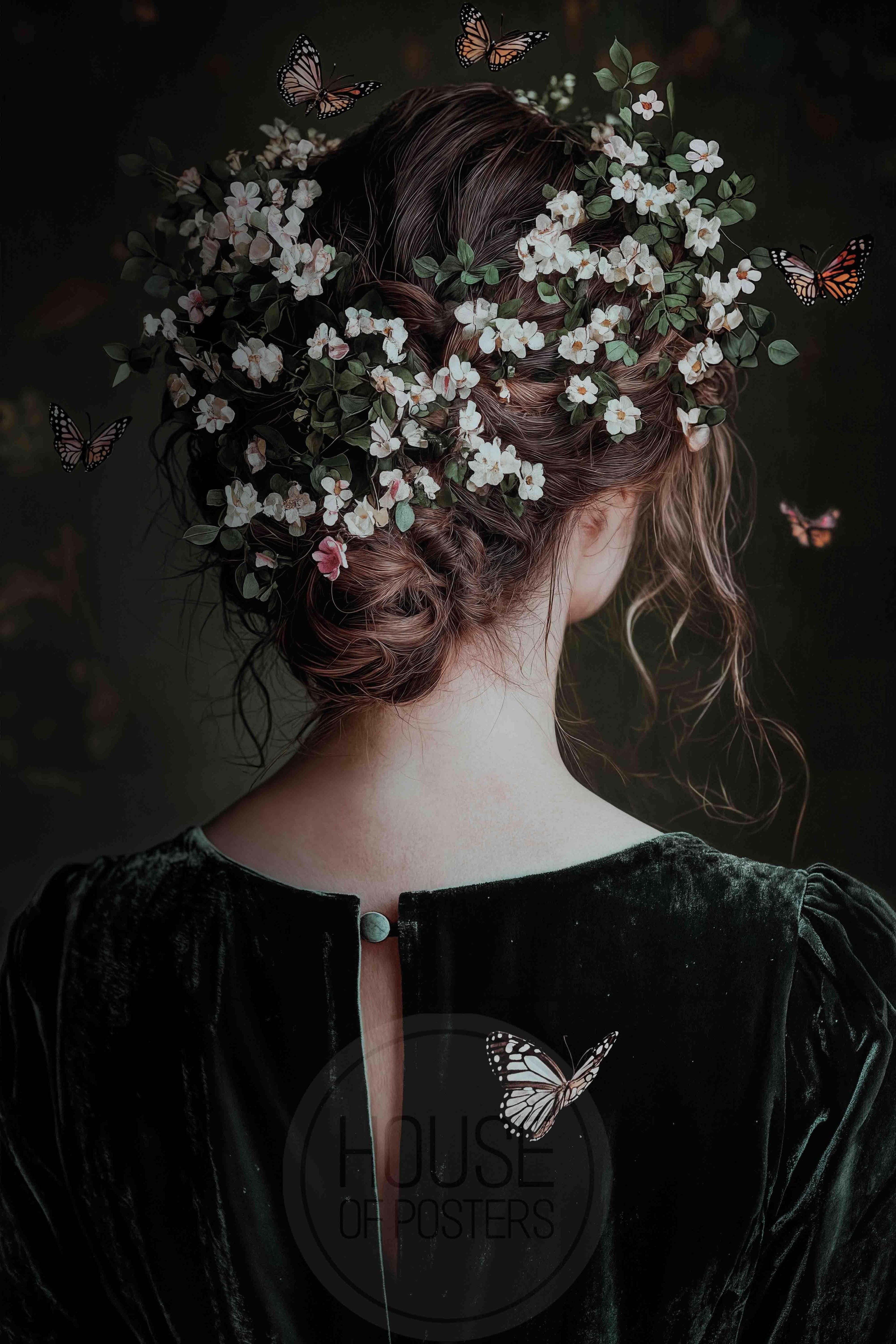 - Authentieke art print met bloemmotieven en vrouwelijk portret